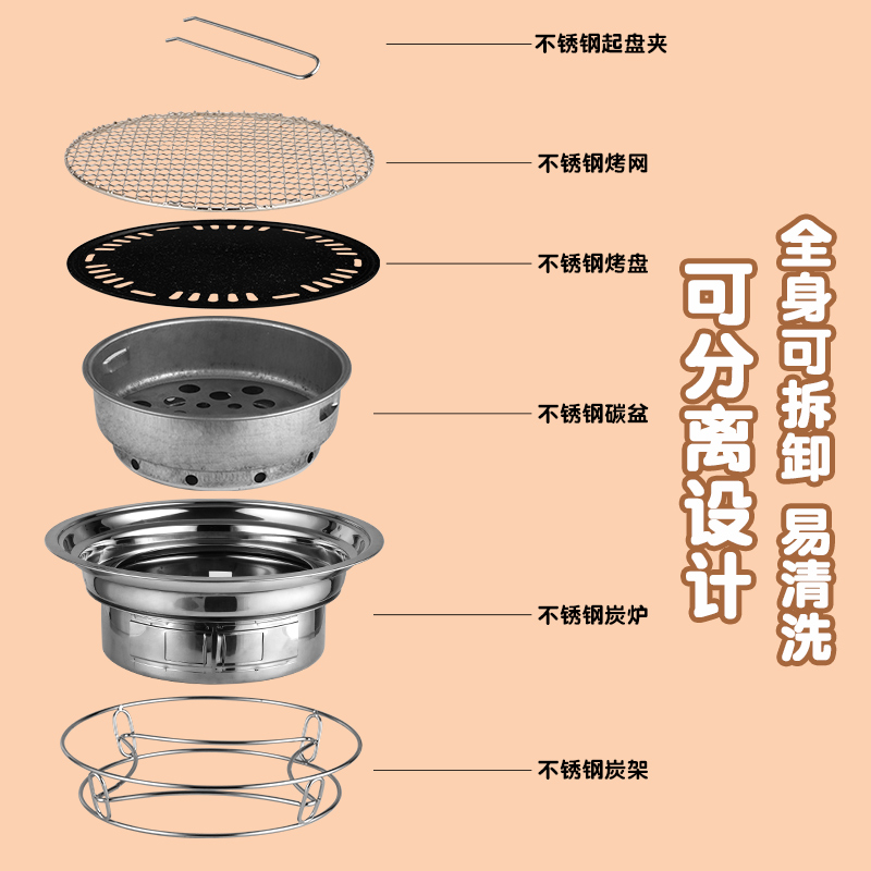 烧烤炉木炭商用不粘烤肉炉韩式家用户外围炉煮茶便携碳烤炉烧烤架