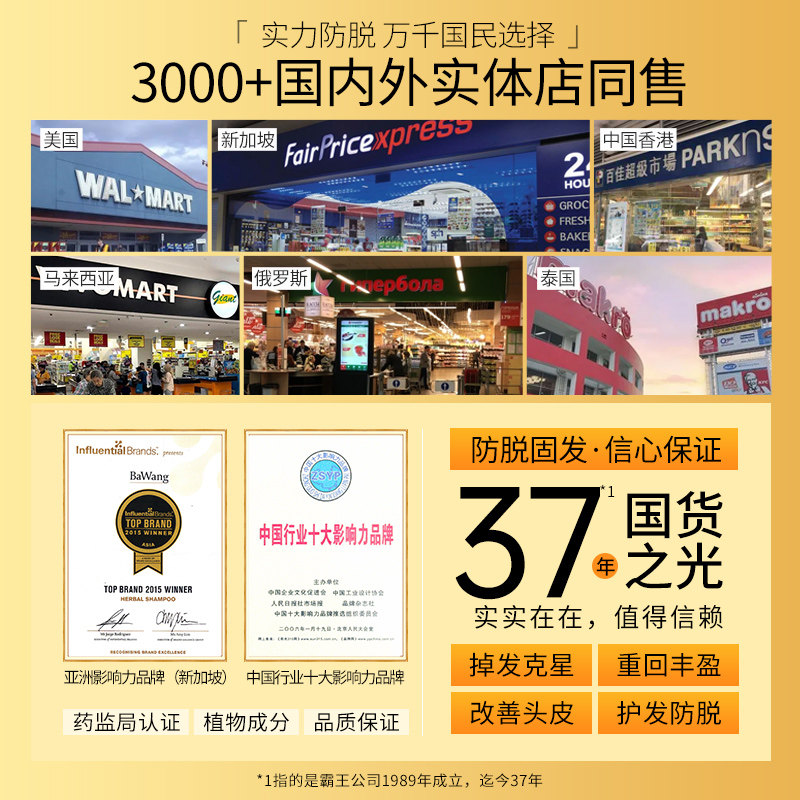 霸王姜汁洗发水控油蓬松首乌养发去黄洗发露去屑止痒生姜洗头膏女