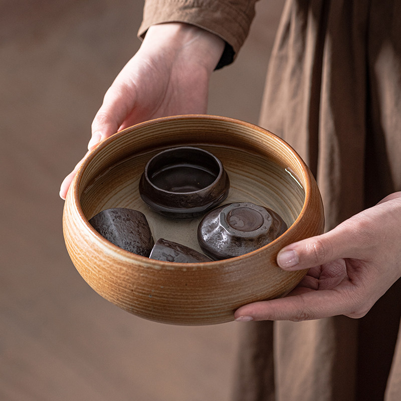 粗陶茶洗陶瓷茶杯洗水盂大号水洗家用茶杯收纳盆中式笔洗茶道配件