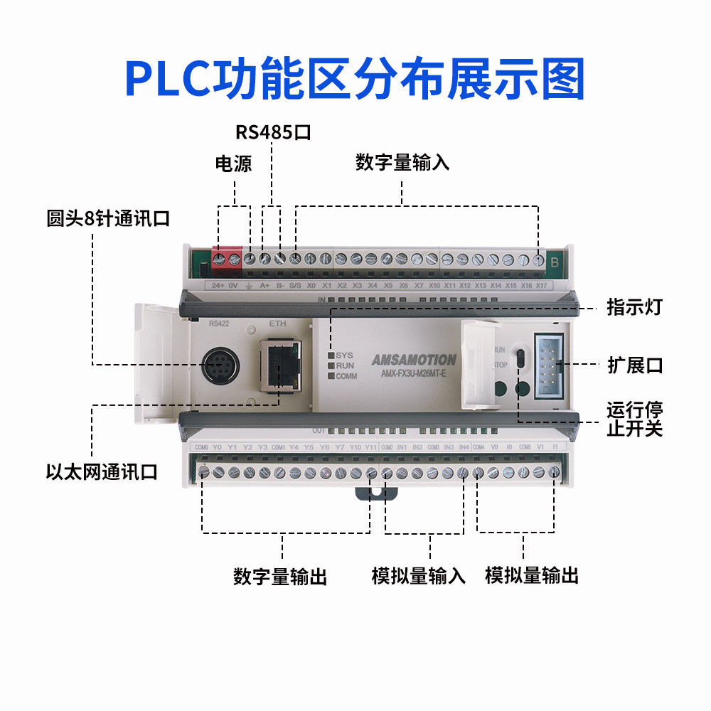 艾莫迅适用三菱PLC可编程控制器FX3U-26MT带模拟量32MR国产工控板