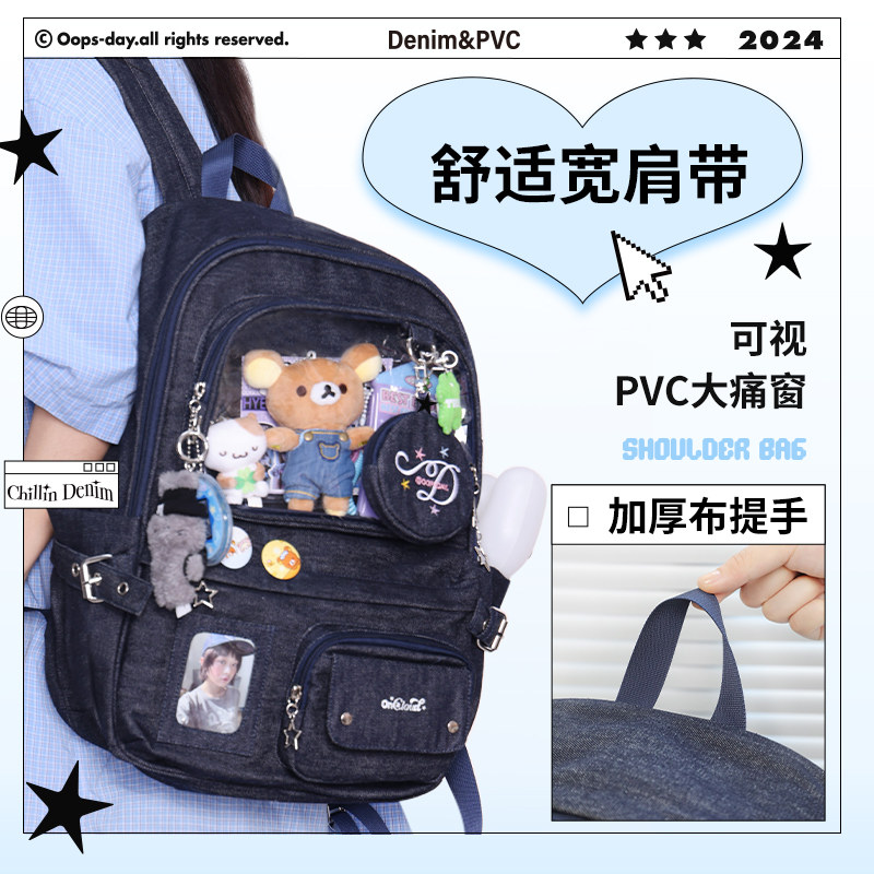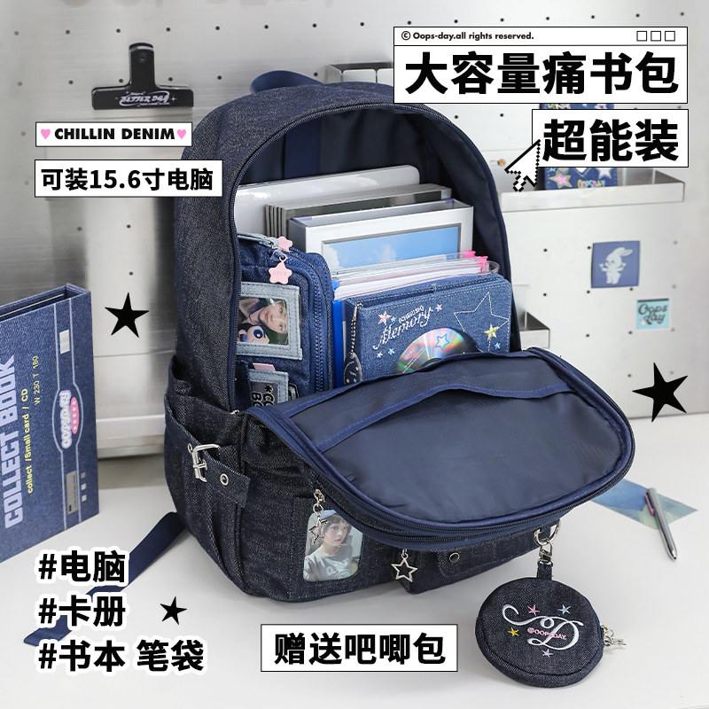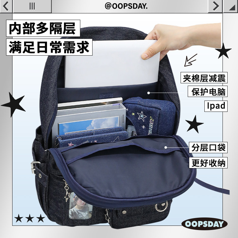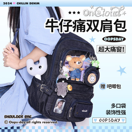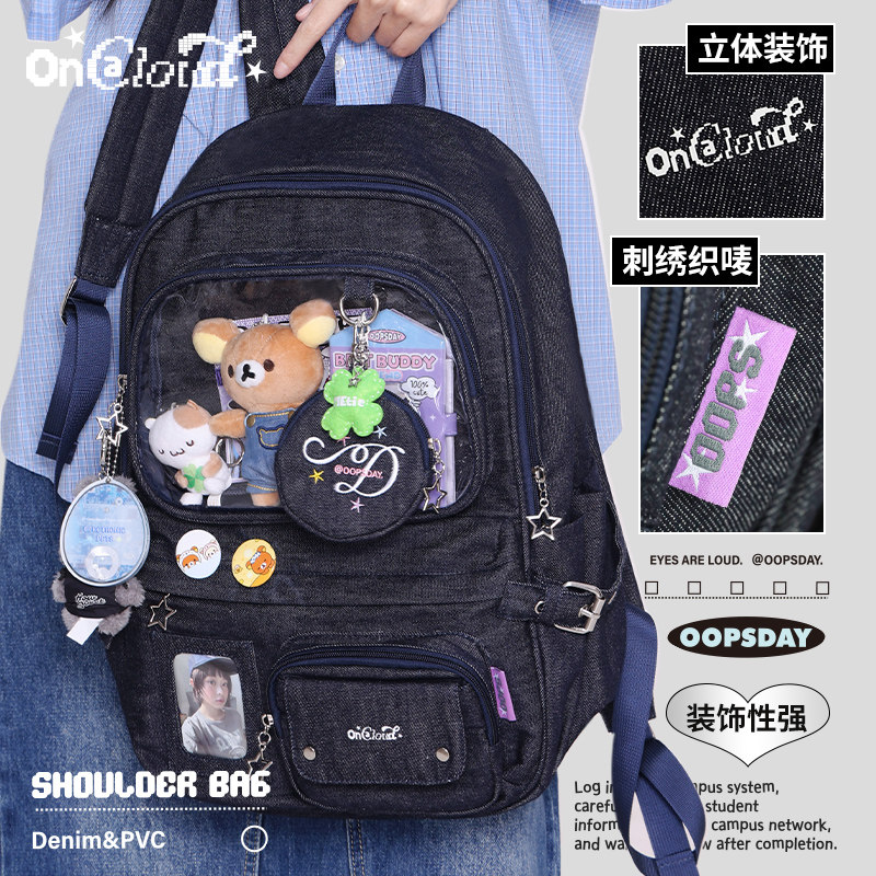 OOPSDAY牛仔痛包双肩包背包书包初中女生ins小众不撞款大容量