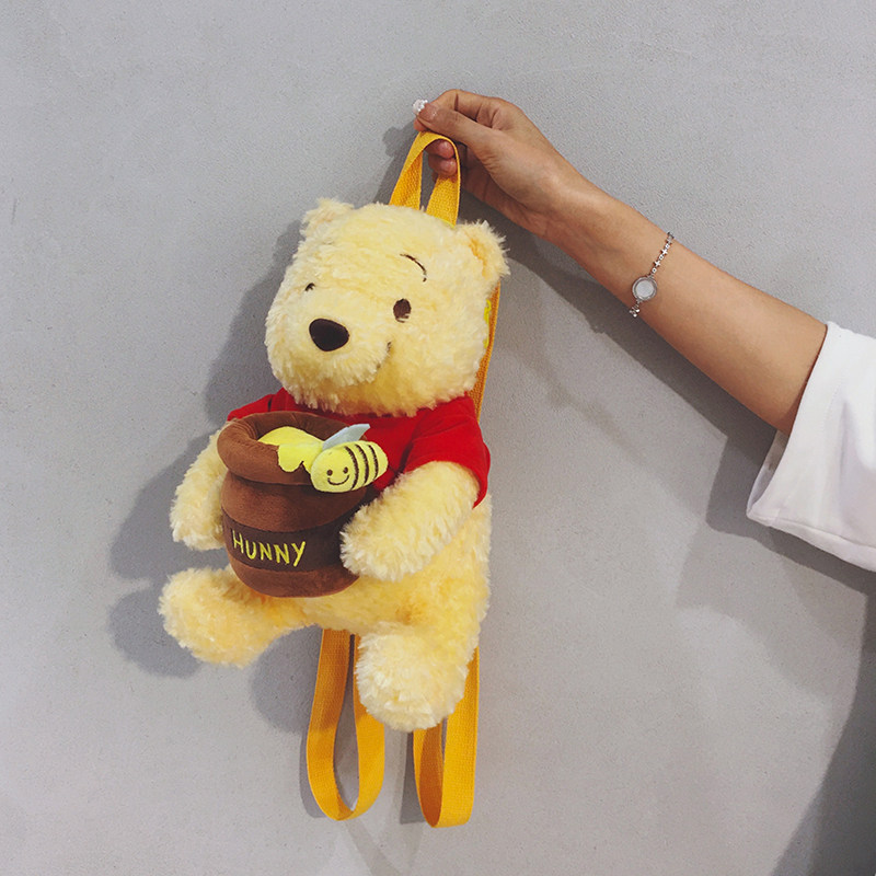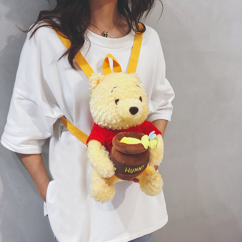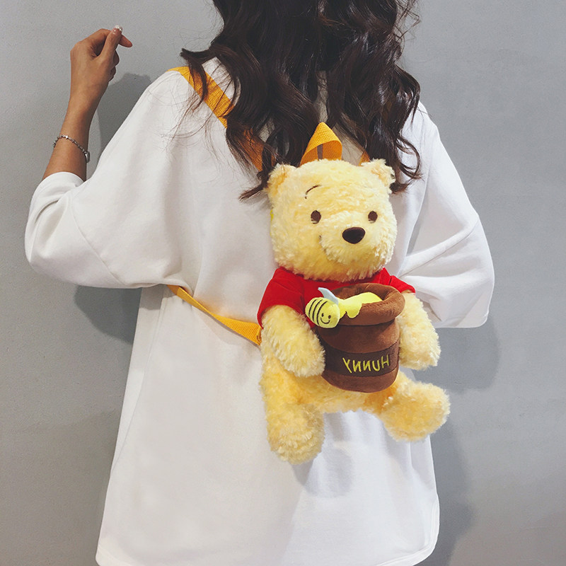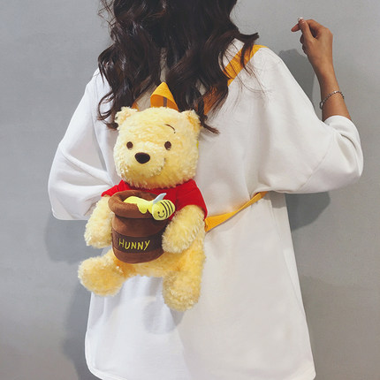 玲澜维尼熊可爱毛绒迷你小双肩包