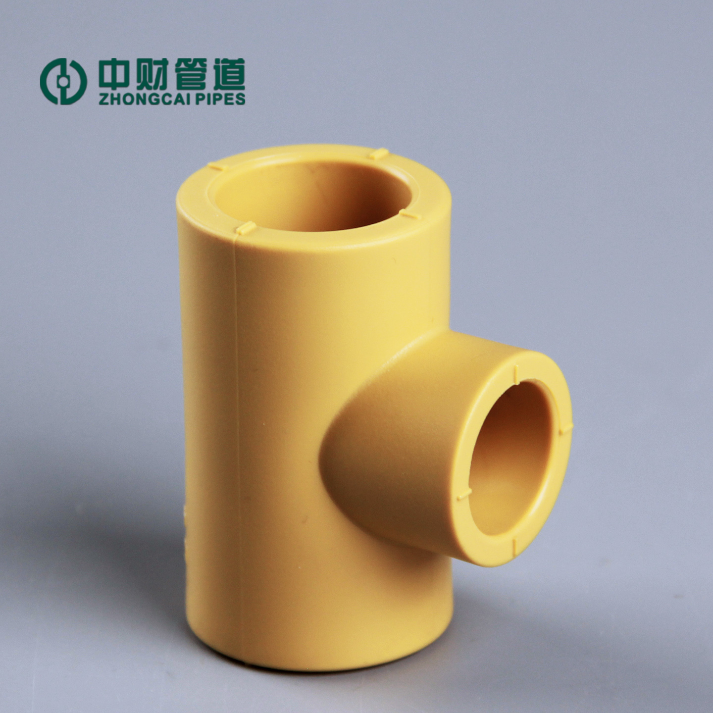 中财管道咖喱色PPR冷热给水异径三通热熔变径三通25*20管件配件