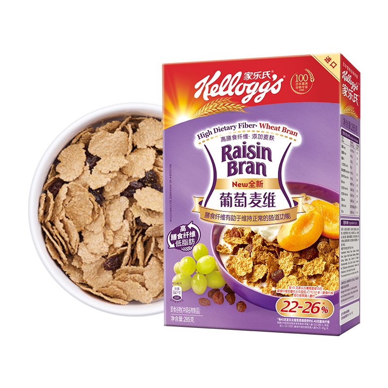 家乐氏葡萄麦维全麦维燕麦麸皮高纤健身麦片减糖代餐即食谷物早餐