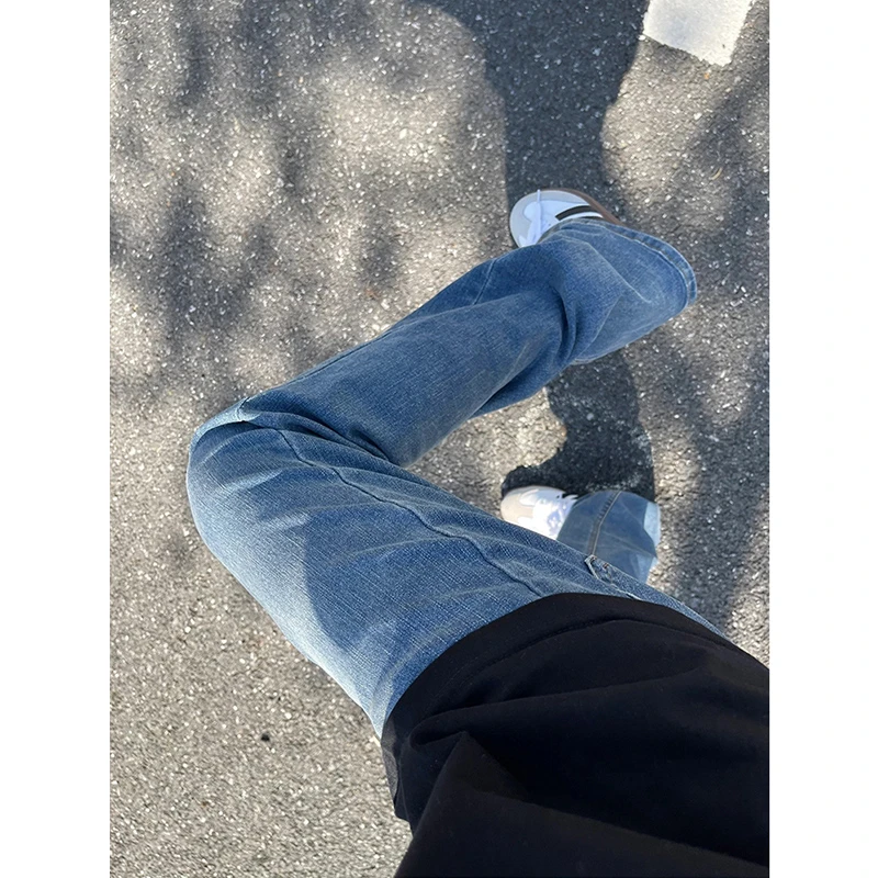 直筒微喇牛仔裤男春秋户外运动休闲cleanfit弯刀修身百搭阔腿长裤