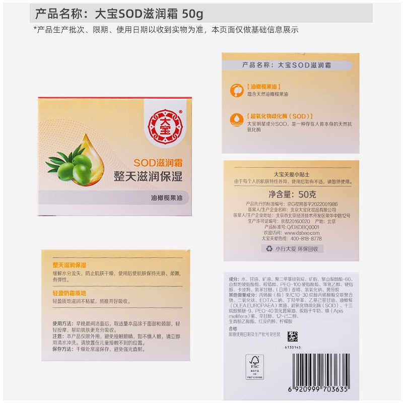 大宝sod蜜滋润霜50g*3瓶保湿补水修护面霜男女乳液官方正品护肤品