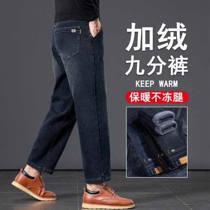 九分加绒牛仔裤男款冬季宽松保暖男士9分长裤小个子加厚男裤子160
