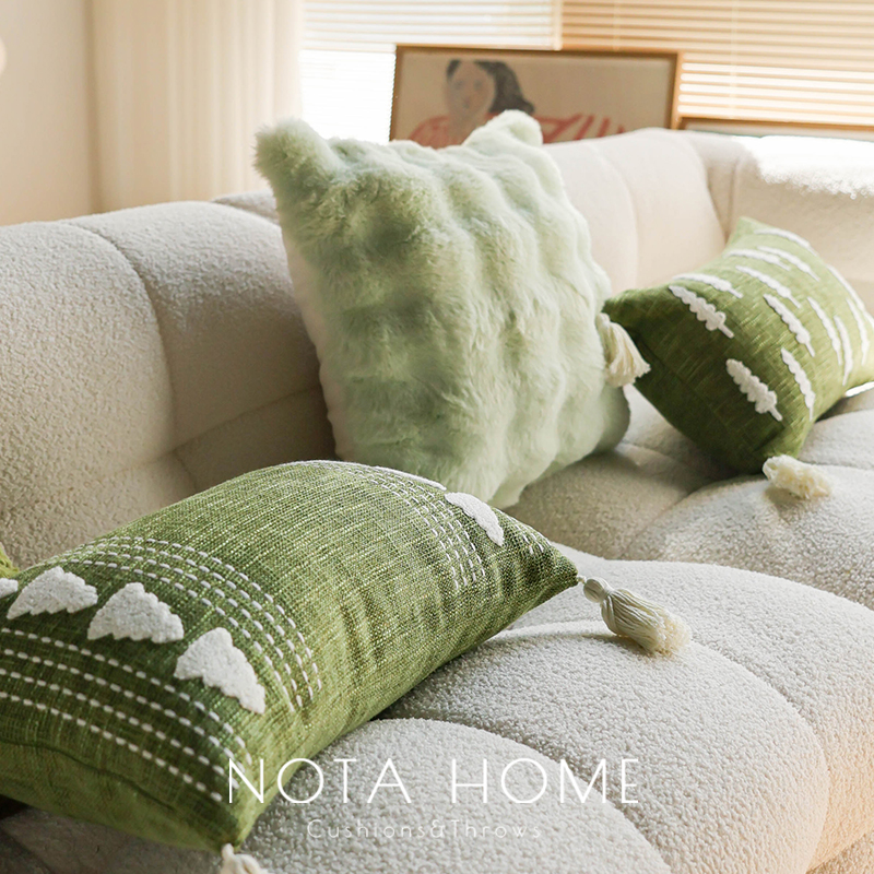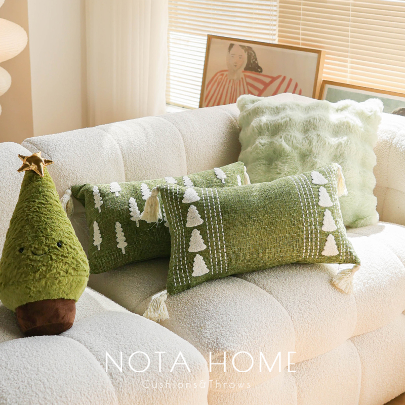圣诞节抱枕小清新绿色枕套高级感毛绒超软靠枕儿童房新家软装腰枕