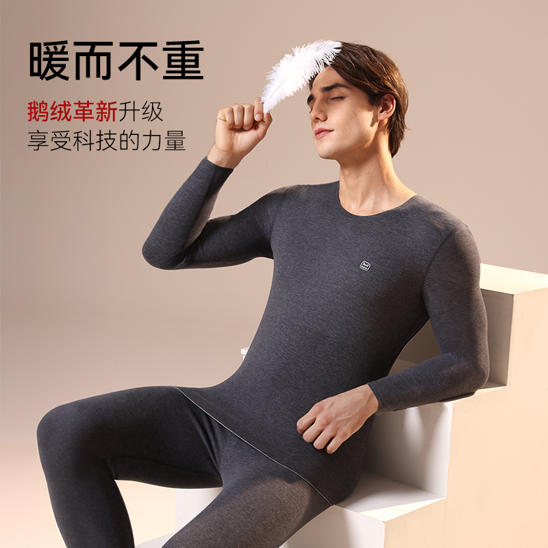 猫人羊毛蚕丝德绒保暖内衣套装男士加绒加厚发热秋衣秋裤男款冬季