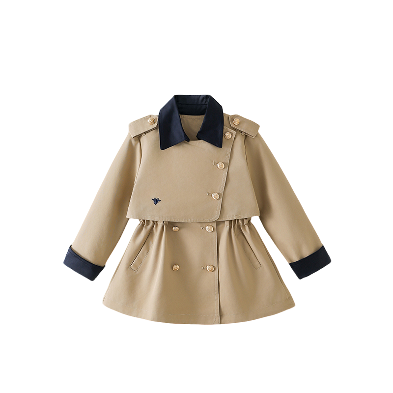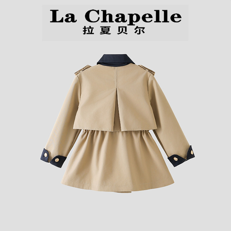 拉夏贝尔女童秋季英伦连衣裙风衣中长款大衣春秋装背心裙儿童套装