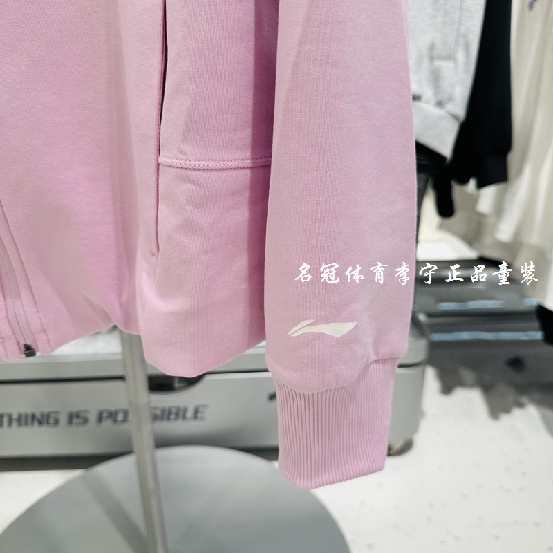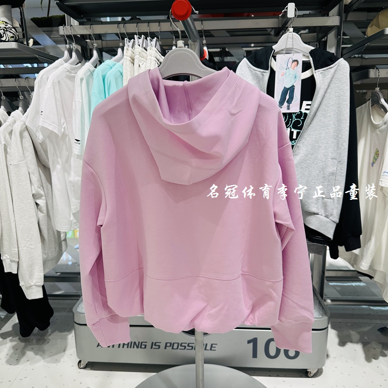 李宁儿童装2025秋季新品女大童针织外套宽松运动休闲舒适连帽卫衣
