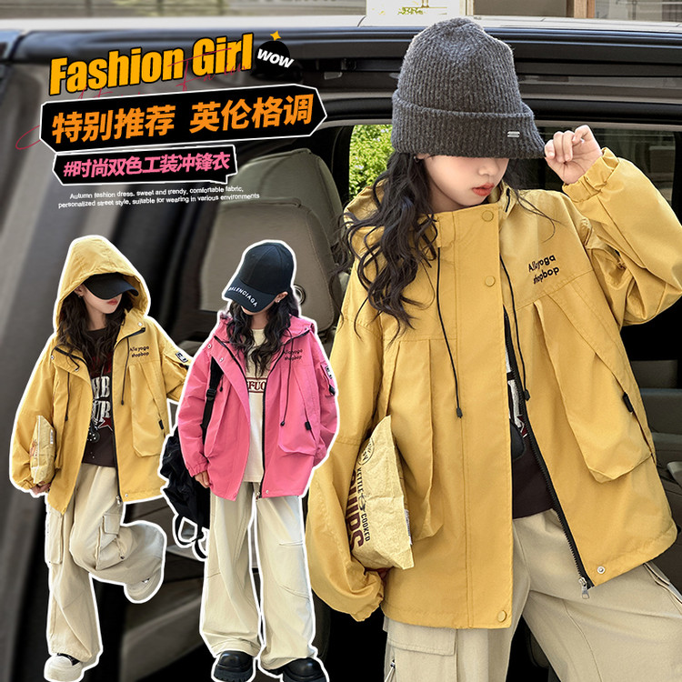 女童秋装外套2025新款洋气儿童春秋款宽松夹克大童户外防风冲锋衣