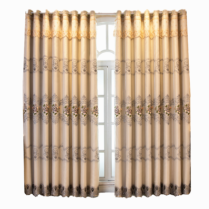 欧式现代水溶绣花窗帘成品双层布纱一体遮光卧室高档客厅阳台落地