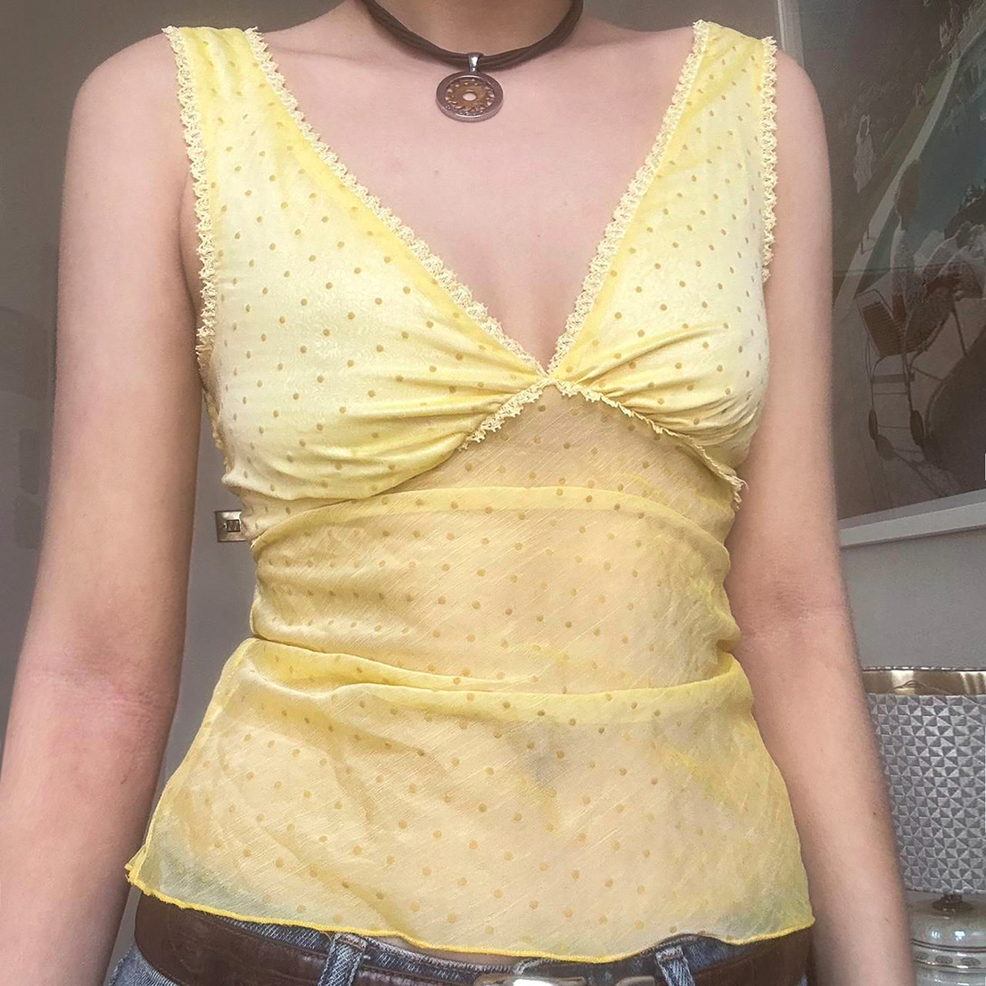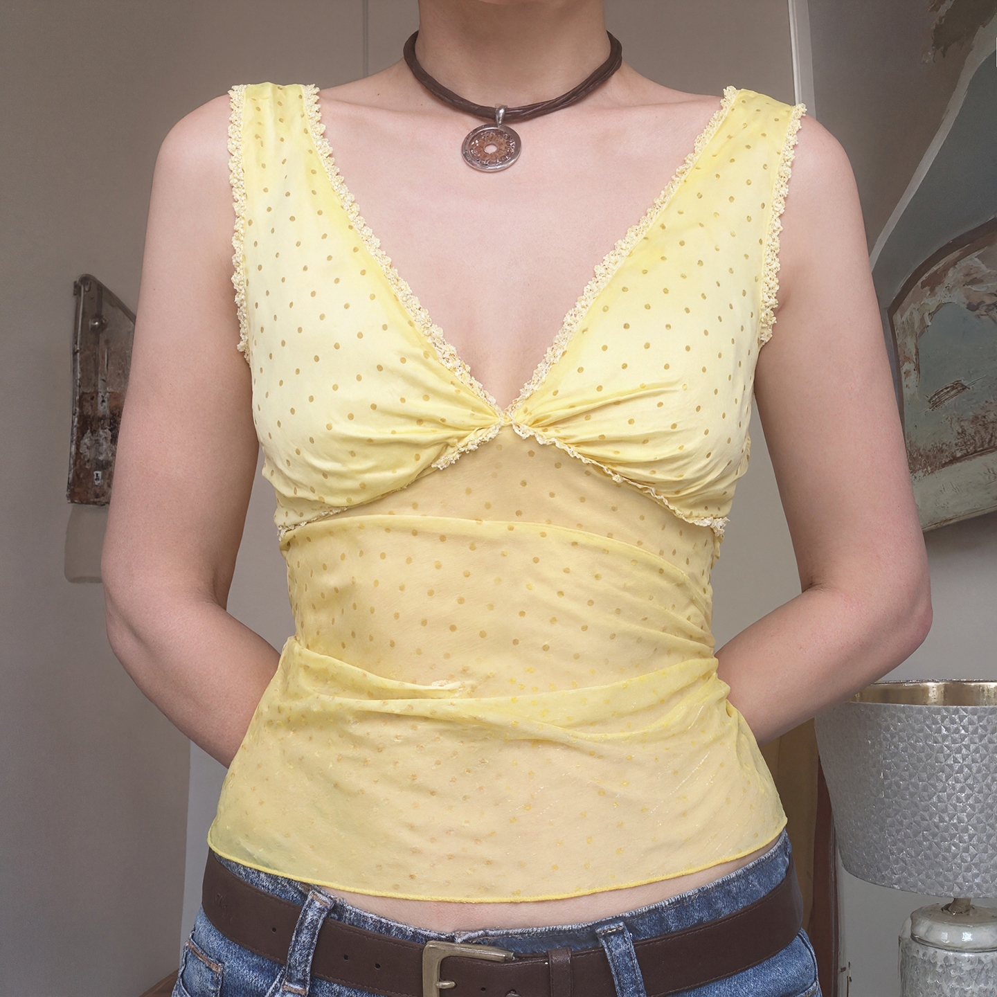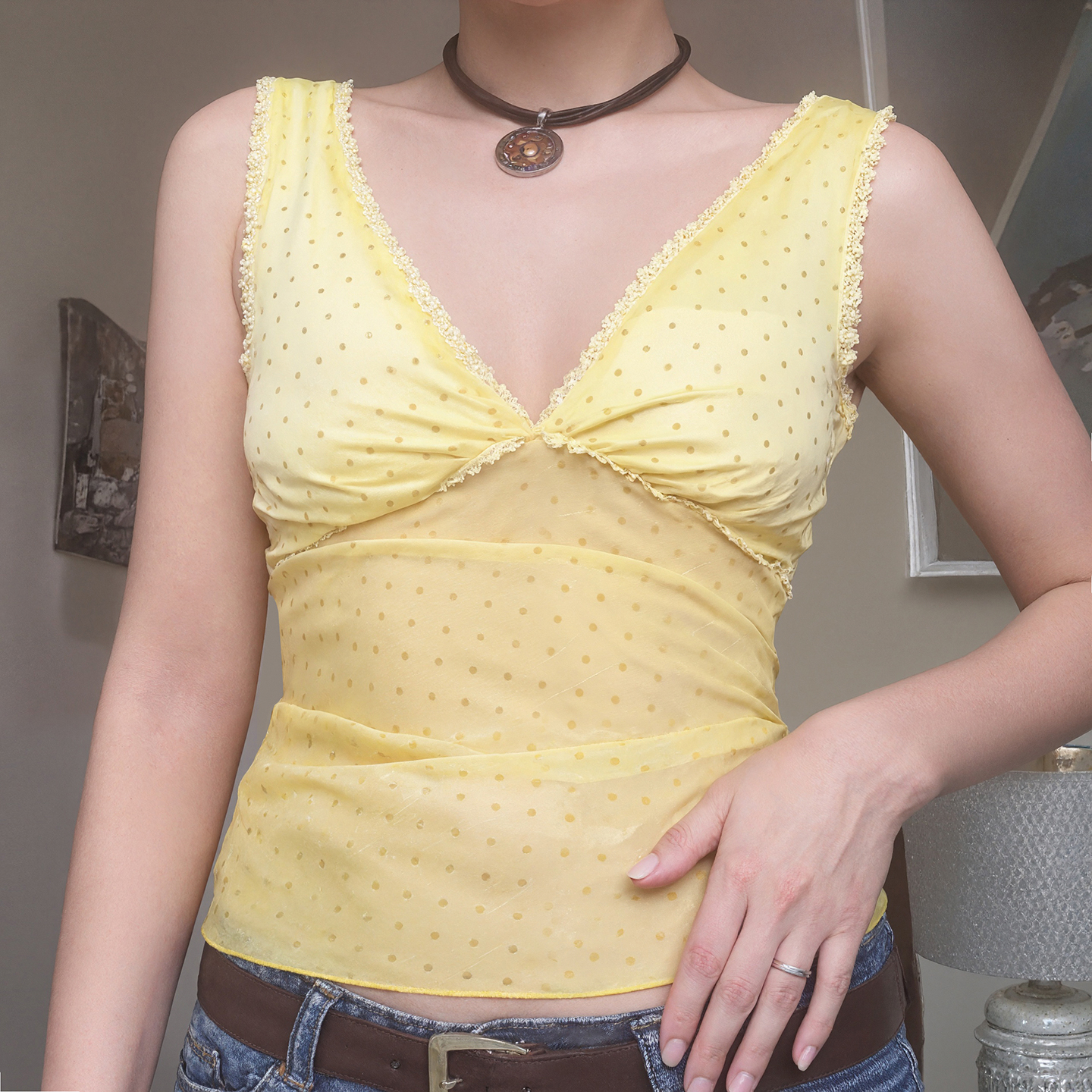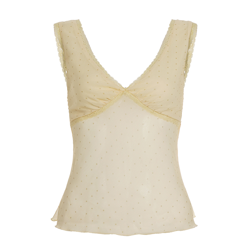 Amyway【夏日多巴胺】甜辣少女感波点印花V领背心网纱露背上衣女