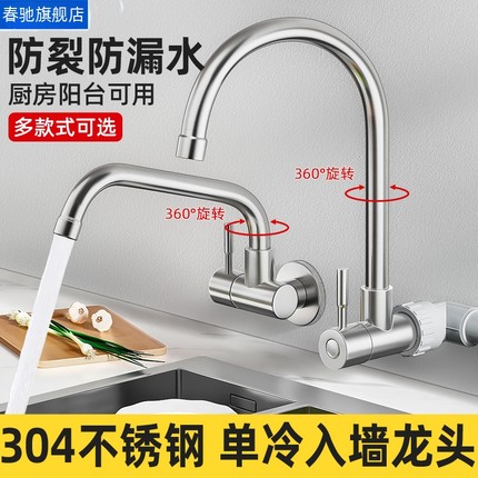 入墙式水龙头不锈钢单冷家用厨房洗菜盆洗碗洗衣池水槽旋转防溅水