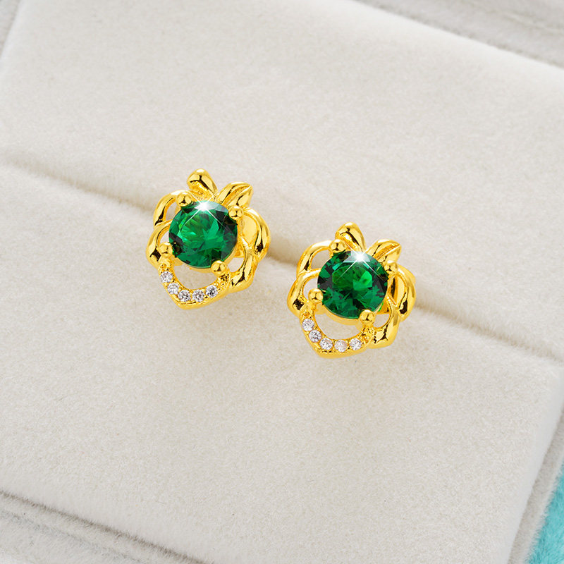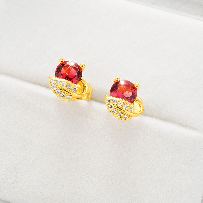 红色宝石耳钉女越南沙金
