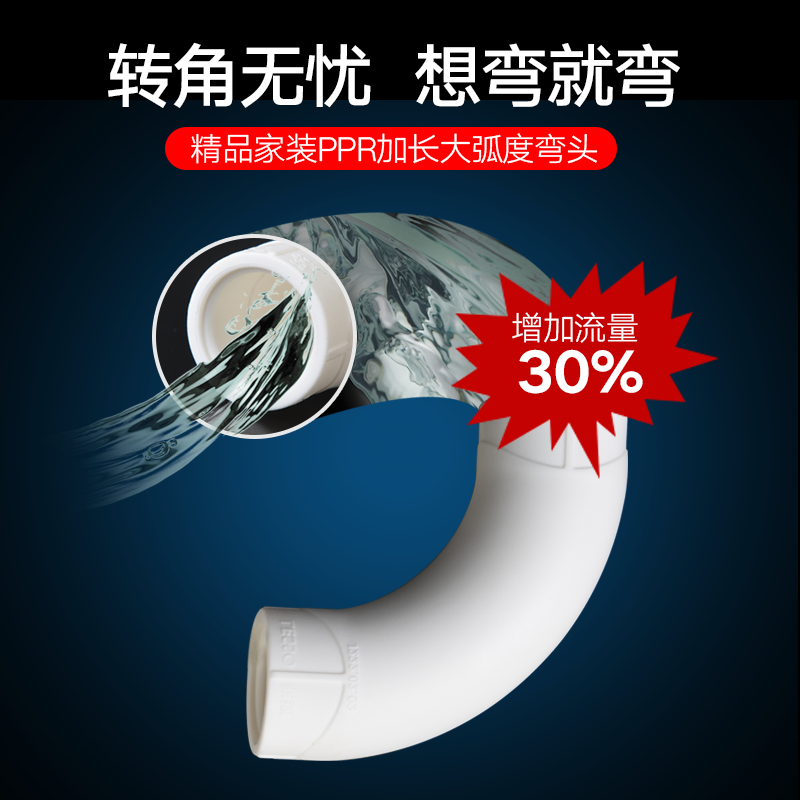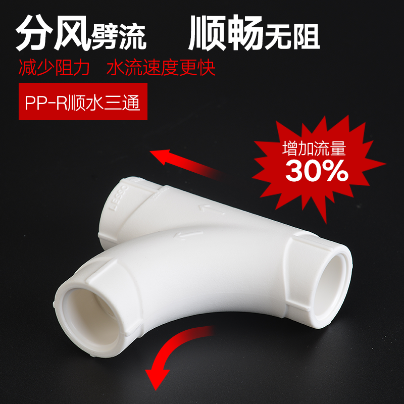 联塑PPR大弧度弯头燕尾顺水三通S弯头过桥四通回水弯大流量管件
