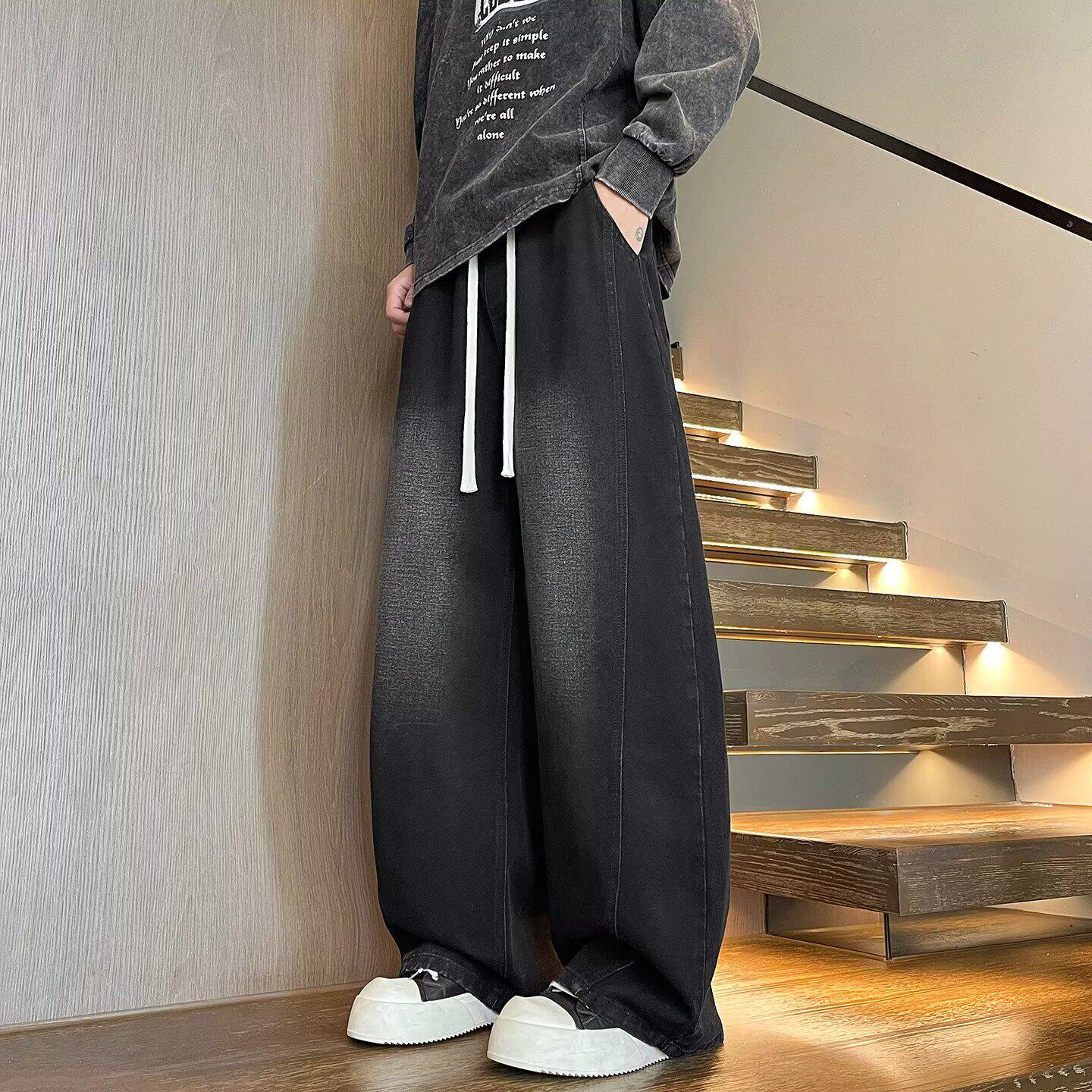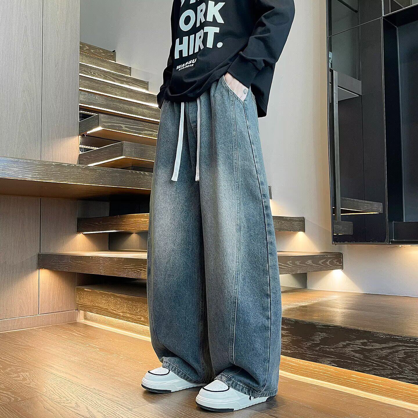 复古牛仔裤男士春秋季新款弯刀休闲裤子男青少年宽松直筒阔腿长裤