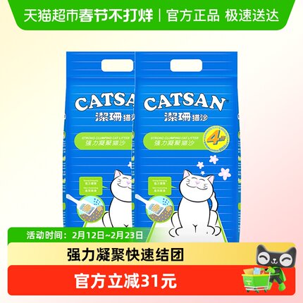 CATSAN洁珊猫砂膨润土9L*2袋装除臭吸水快速结团猫咪猫沙低粉尘