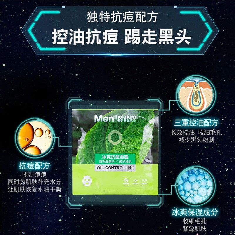 曼秀雷敦男士面膜冰爽活炭净油透明质酸快速补水保湿滋润抗痘黑头
