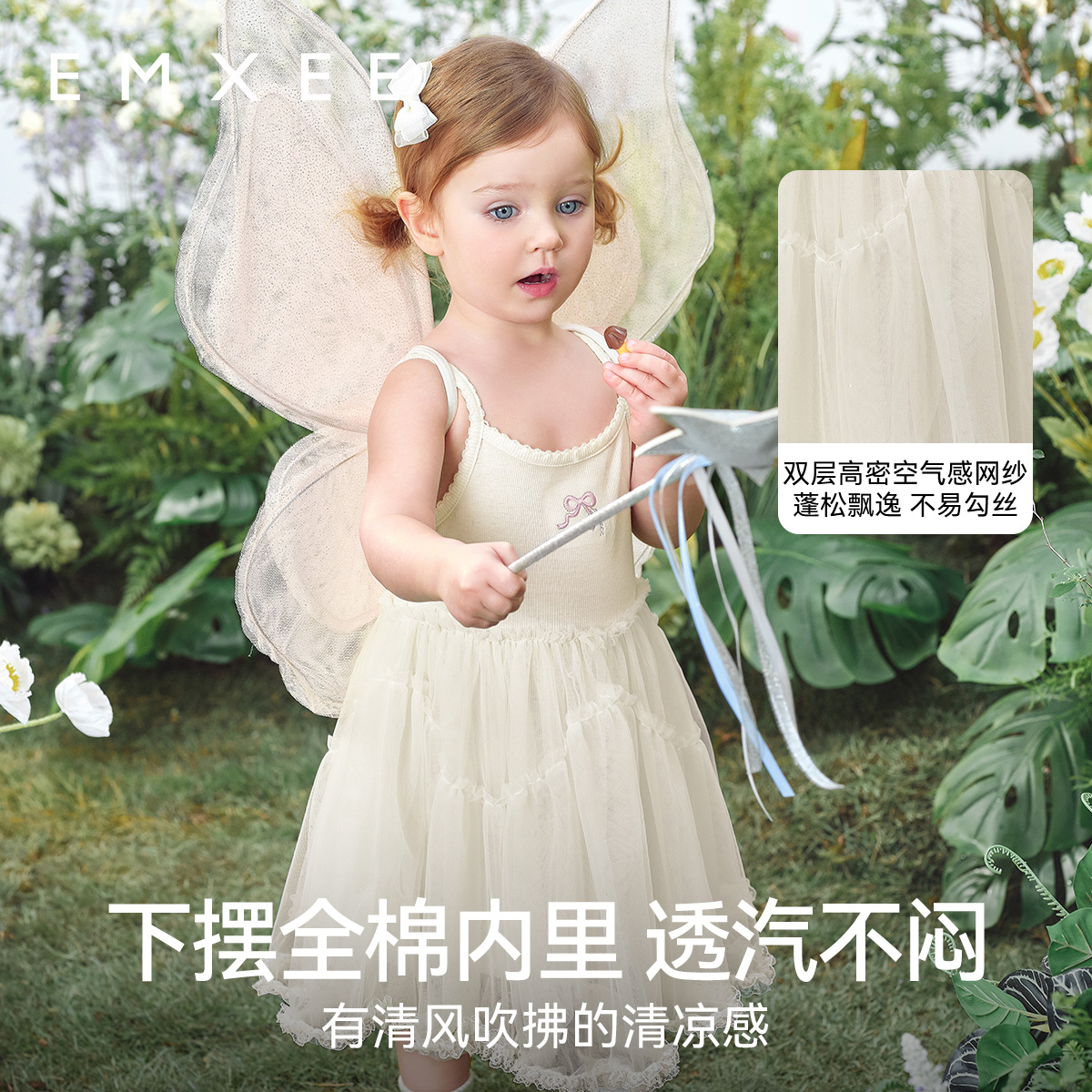 【新品始发】嫚熙童装连衣裙桑蚕丝夏季吊带连衣裙女童网纱公主裙