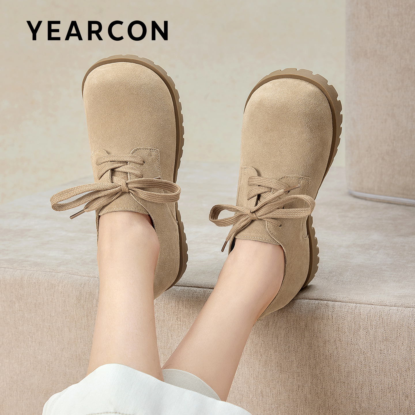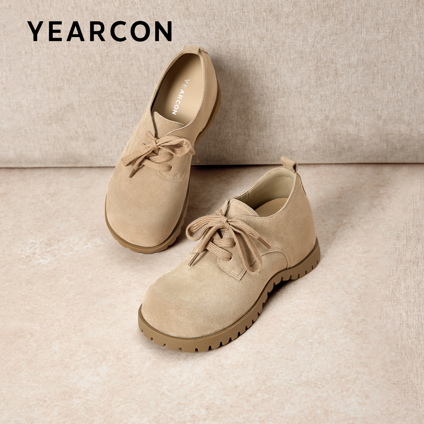 意尔康真皮工装皮鞋女2025秋季新款低帮大黄靴厚底内增高休闲单鞋