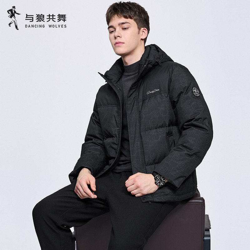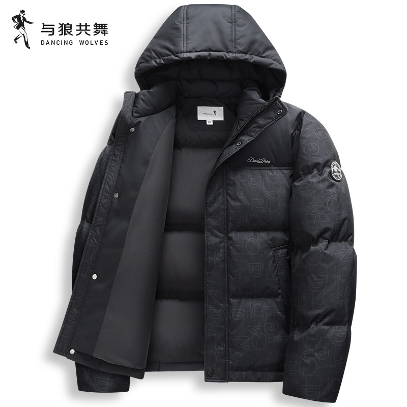 【印花】与狼共舞连帽羽绒服男2025冬季新款保暖拼接防风休闲外套