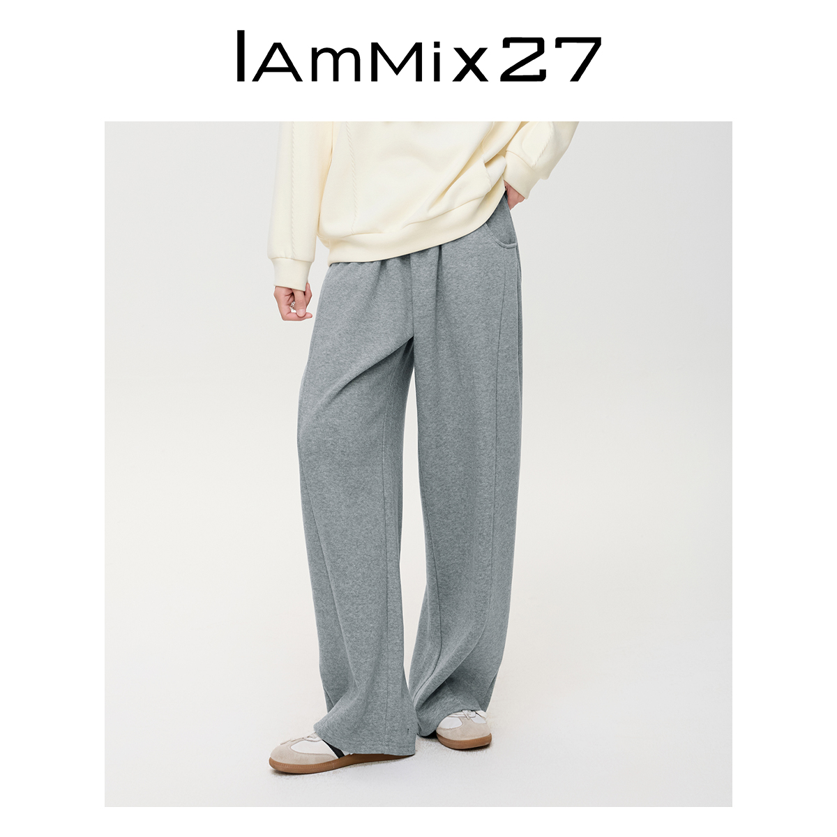 IAmMIX27秋冬高腰直筒裤女宽松加厚磨毛松紧腰运动休闲卫裤女长裤