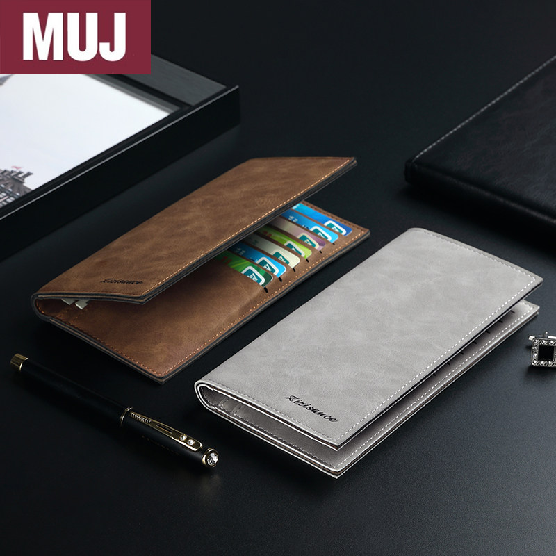 软皮MUJ卡包钱包一体男士超薄长款皮夹日本钱夹皮夹子新款证件