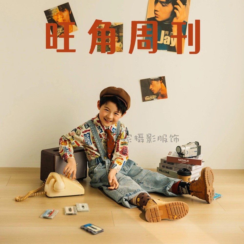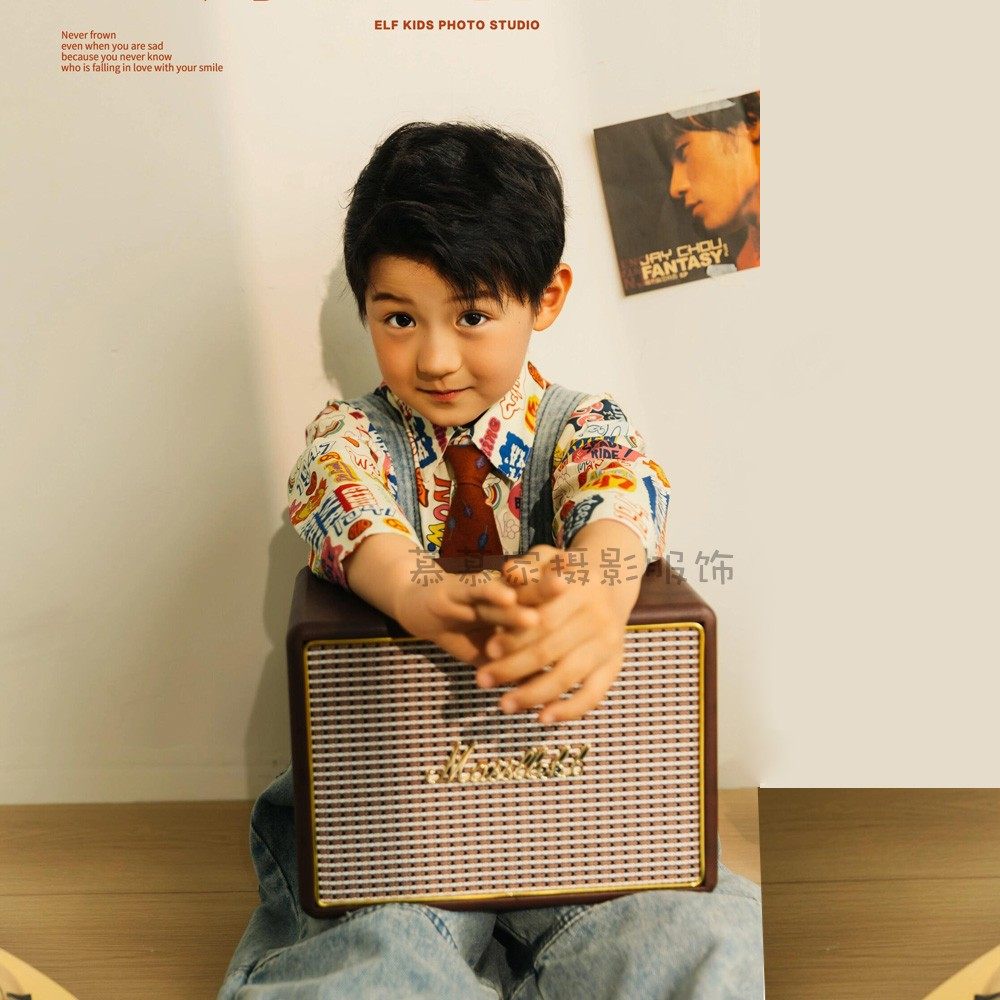 儿童摄影服装复古港风怀旧牛仔背带裤套装男童影楼拍照走秀写真服