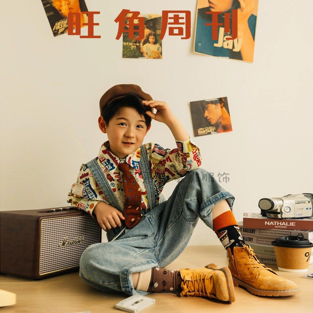儿童摄影港风复古牛仔背带裤套装