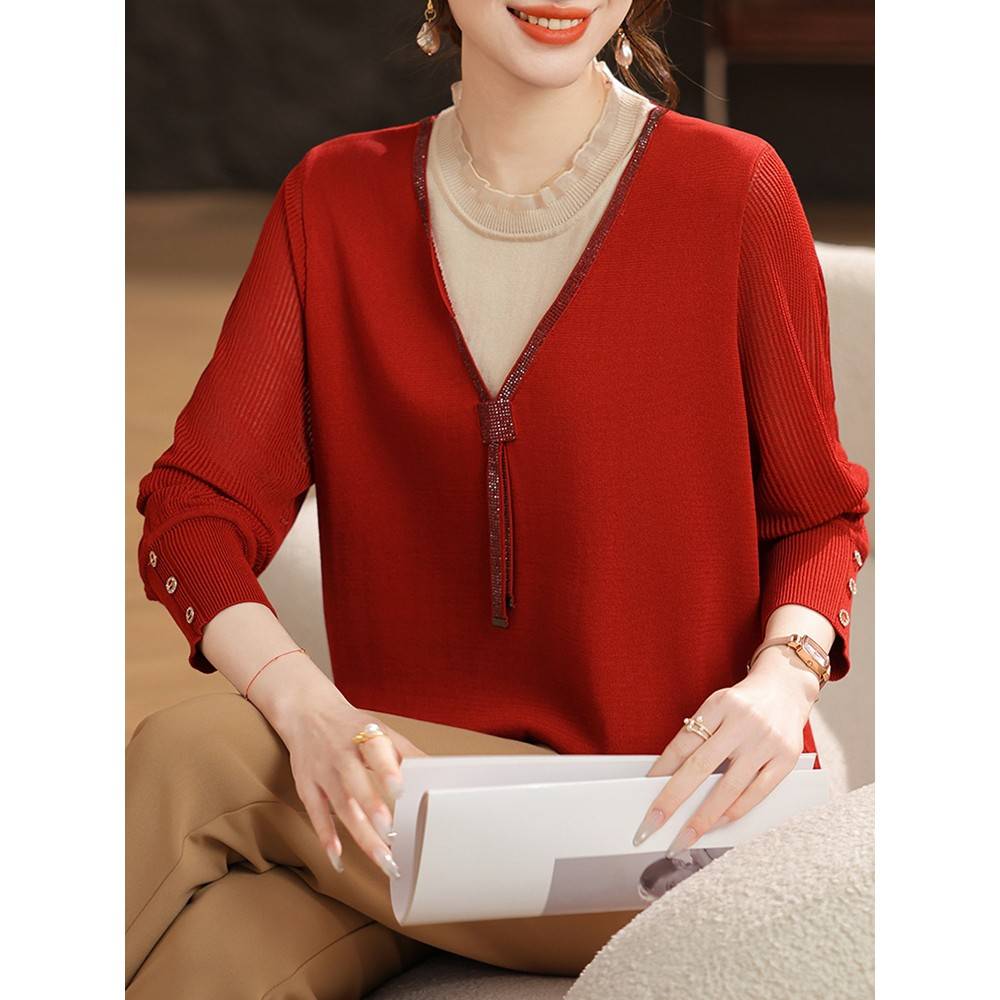 妈妈春装2025新款洋气减龄上衣中老年女装针织打底衫时尚长袖T恤