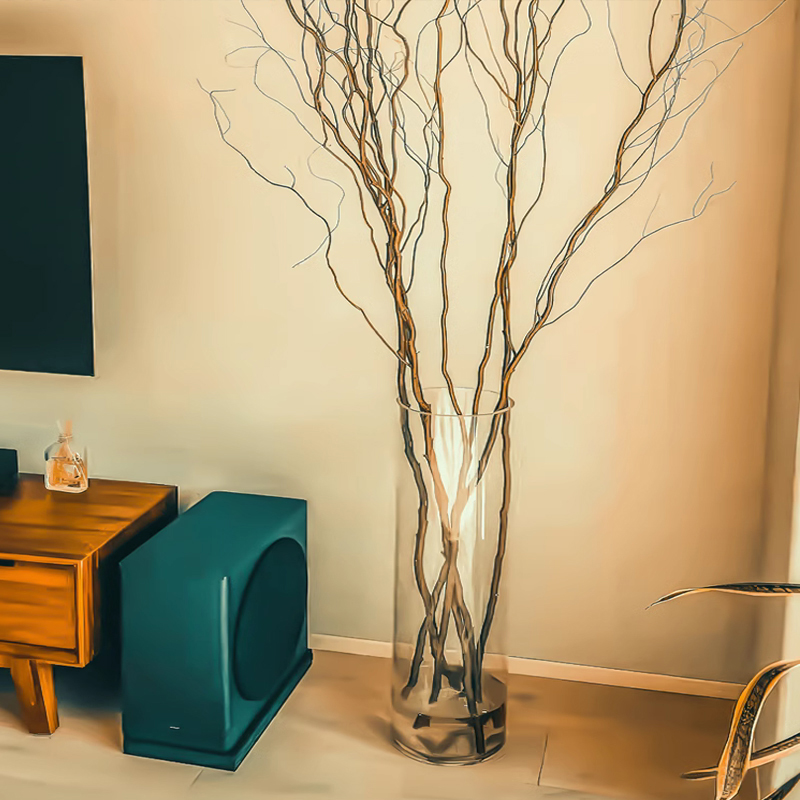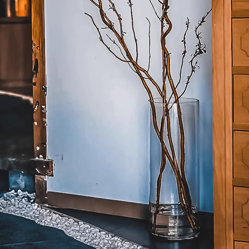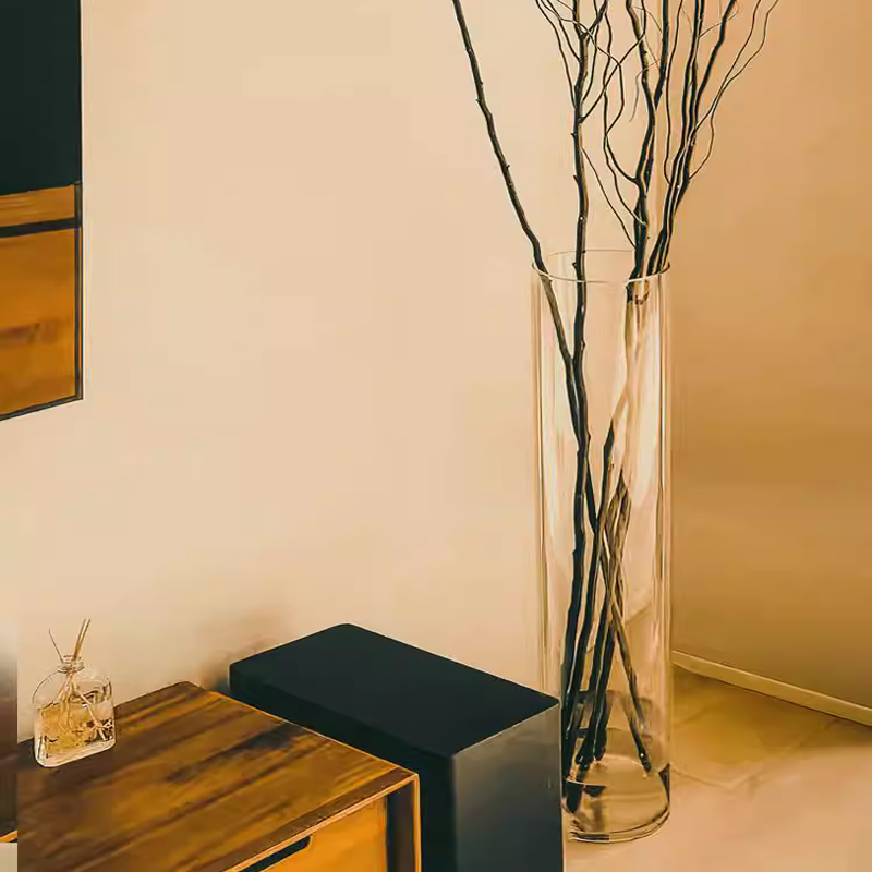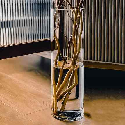 龙柳专用花瓶40厘米透明玻璃圆花瓶圆口圆筒圆形的水培玻璃瓶大号
