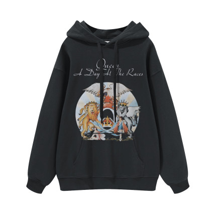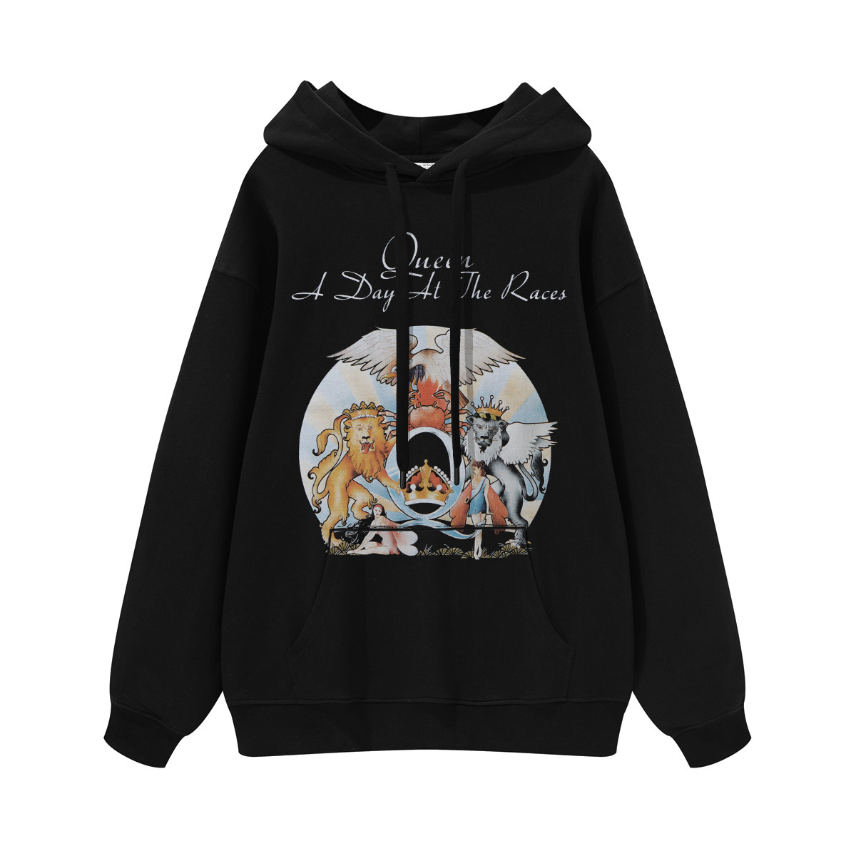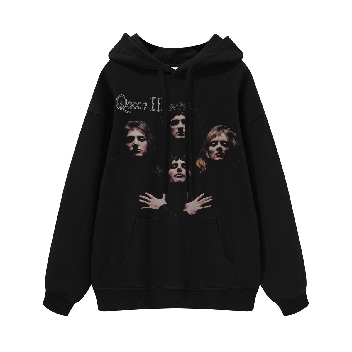 QUEEN皇后摇滚乐队数码印花美式街头涅槃黑灰色男女连帽圆领卫衣