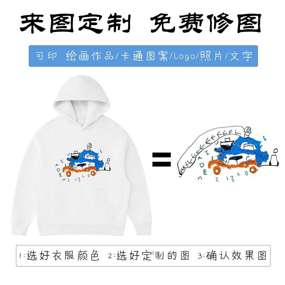 连帽卫衣加绒保暖亲子装定制儿童diy卡通图案绘画涂鸦LOGO印衣服