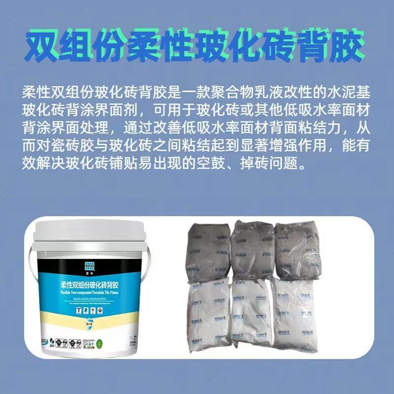雷帝雷帝柔性双组份玻化砖背胶是一款聚合物乳液改性的水泥基玻化