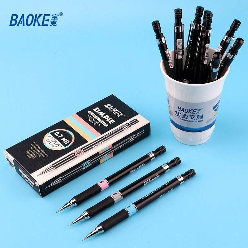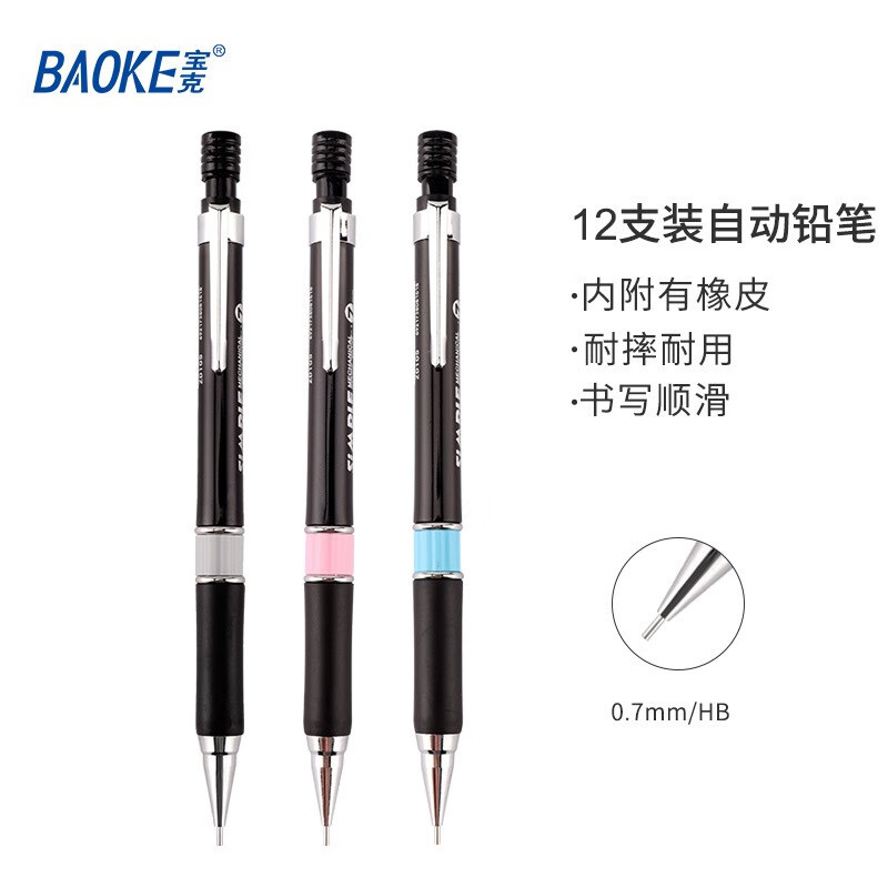 宝克自动铅笔0.5mm 0.7mm按动铅笔绘图笔HB儿童小学生用2B活动铅笔素描笔绘画铅笔不易断芯带橡皮头