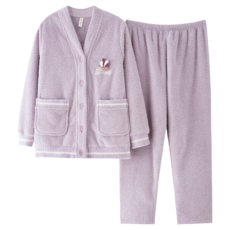 芬腾可安半边绒睡衣女士冬天冬季保暖加厚珊瑚绒可外穿家居服套装