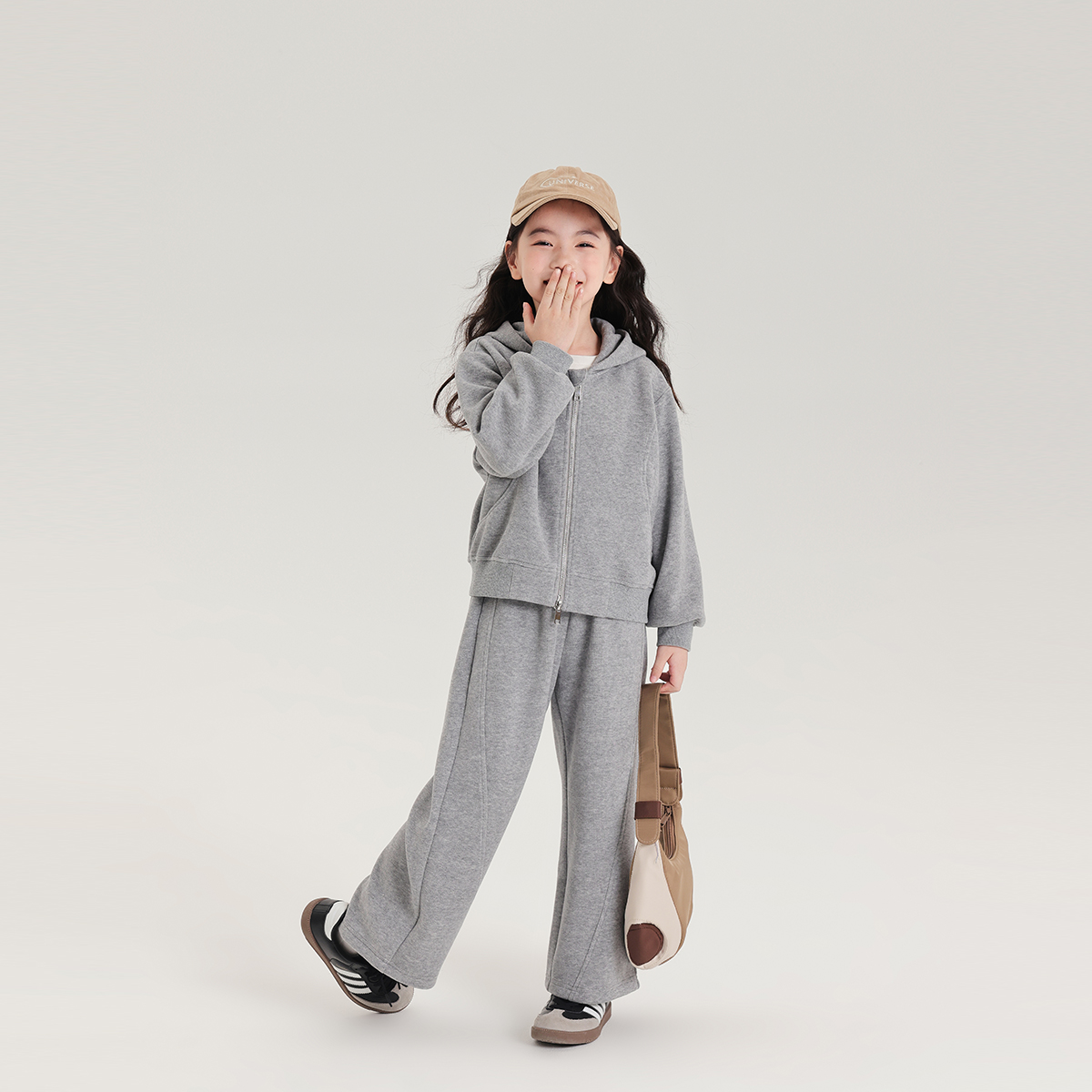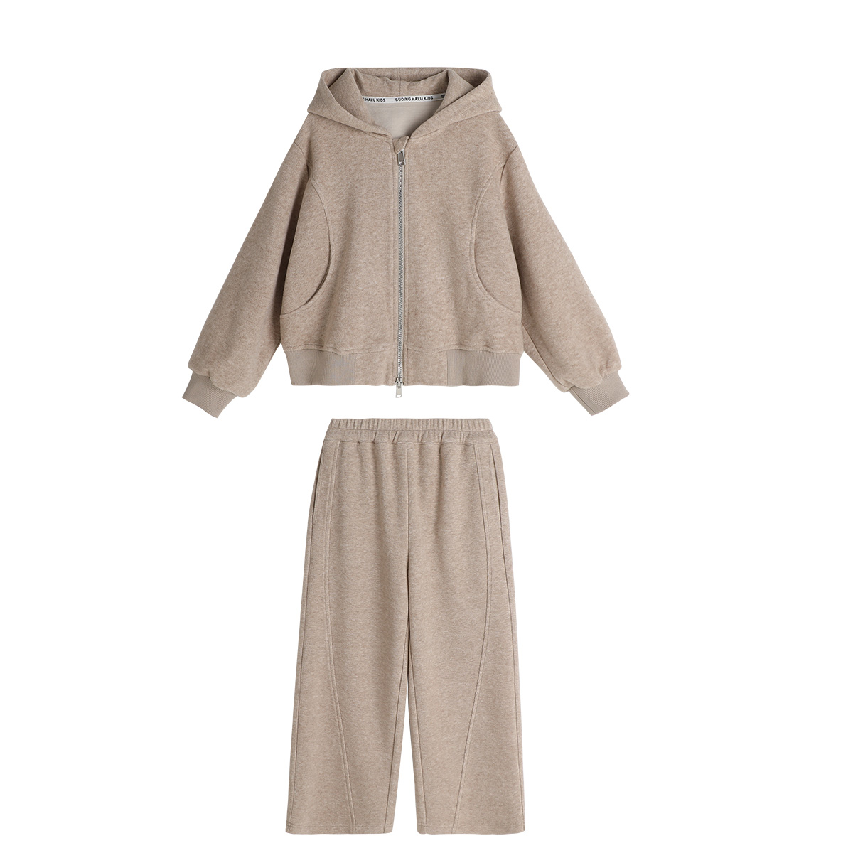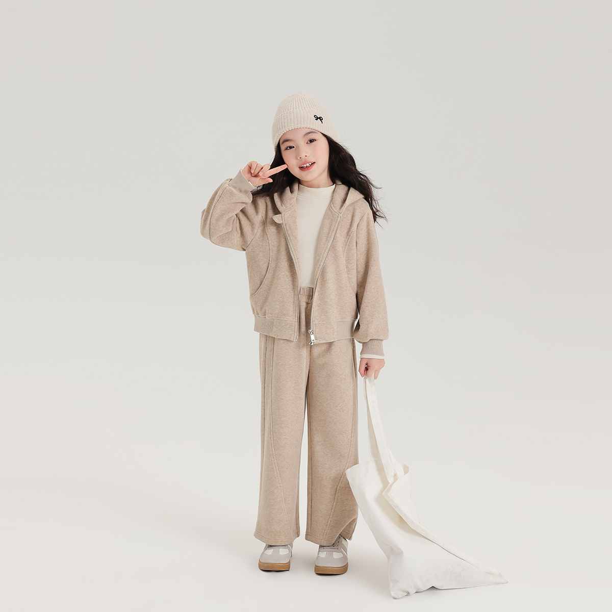 布丁哈鲁童装冬装女童2025秋冬季新款百搭儿童纯色连帽外套套装