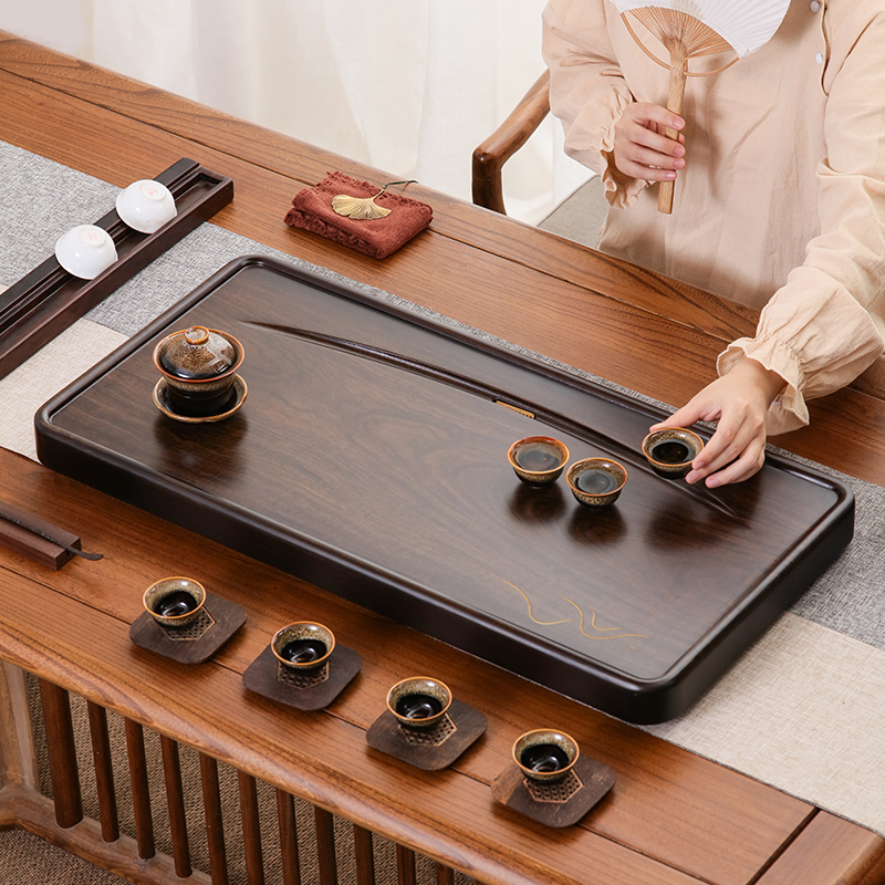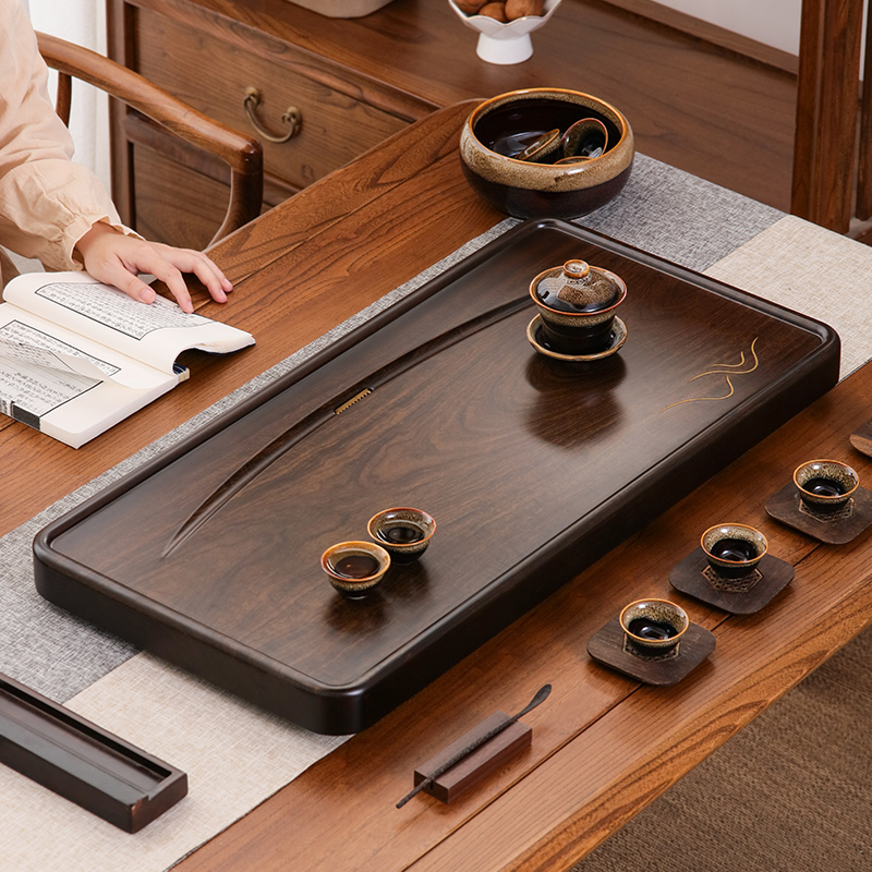 黑檀实木茶盘整块天然原木高档套装茶具排水家用简约客厅轻奢茶台