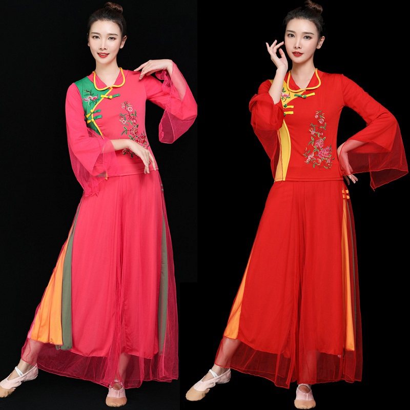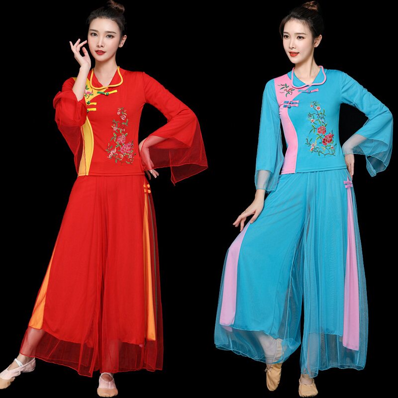 2025新款绣花秧歌服装女夏民族团队健身表演出跳舞蹈服广场舞套装