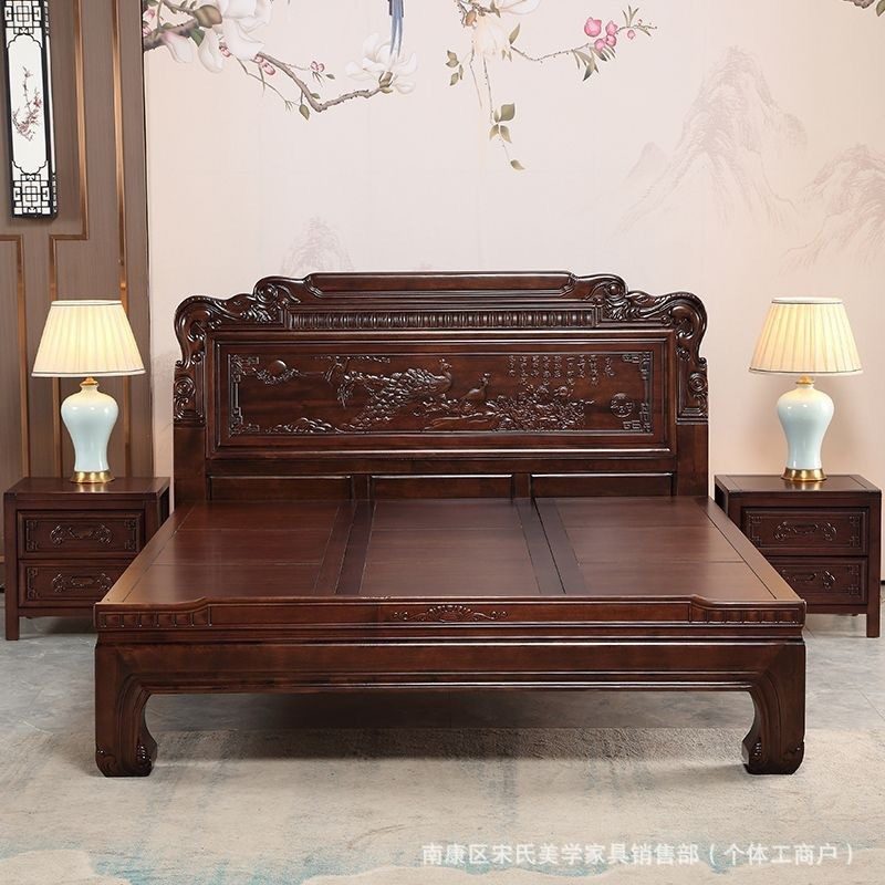 古典中式花梨木全实木床2米古典主卧双人床1.8雕花榫卯主卧大床