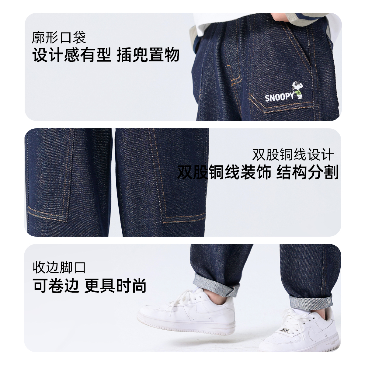 史努比男童牛仔裤潮酷时尚春秋新装儿童休闲长裤洋气宽松2025新款