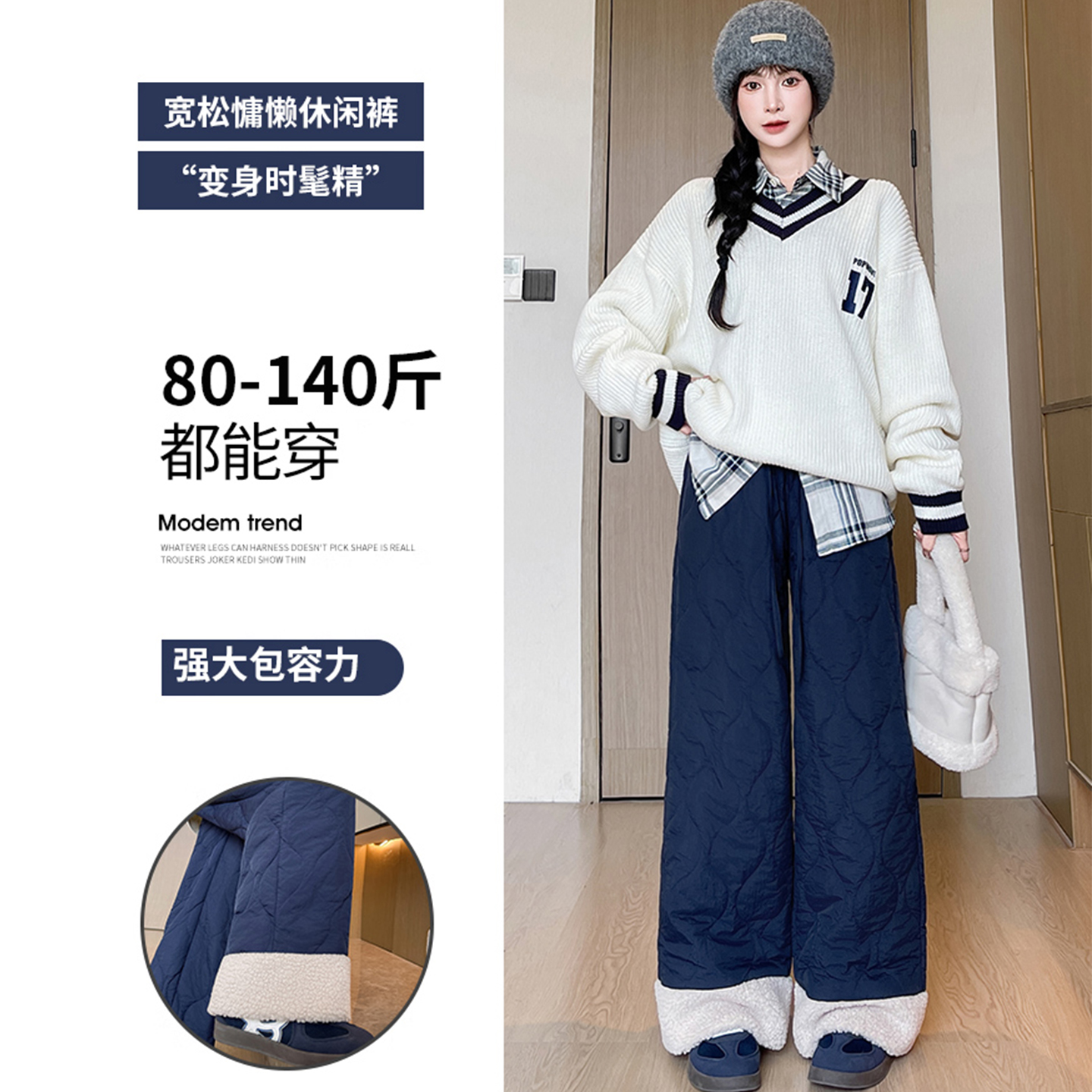 加绒加厚高腰显瘦外穿滑雪阔腿裤