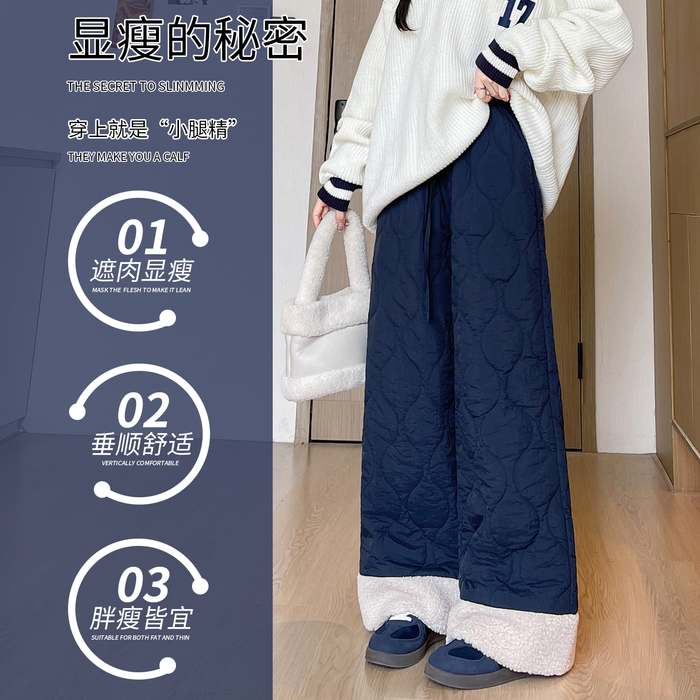 羊羔绒防风棉裤女2025冬季加绒加厚高腰小个子保暖外穿滑雪阔腿裤
