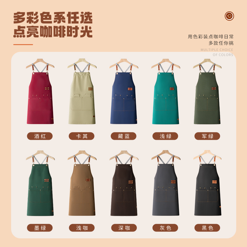 防水帆布围裙定制logo印字餐饮专用厨房餐厅咖啡奶茶服务员工作服