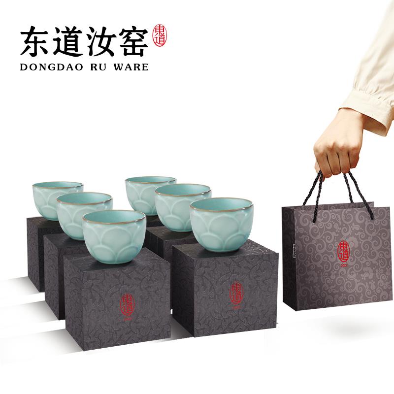 东道汝窑河南非遗陶瓷主人杯高档茶杯单人专用泡茶具莲升杯礼盒装