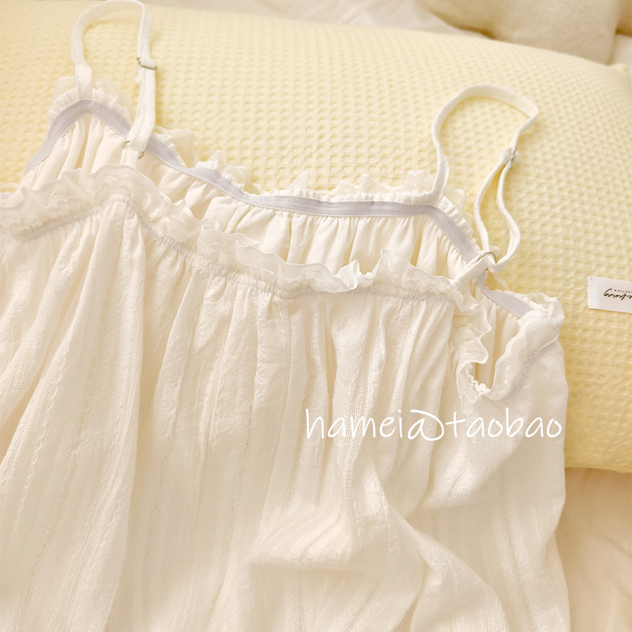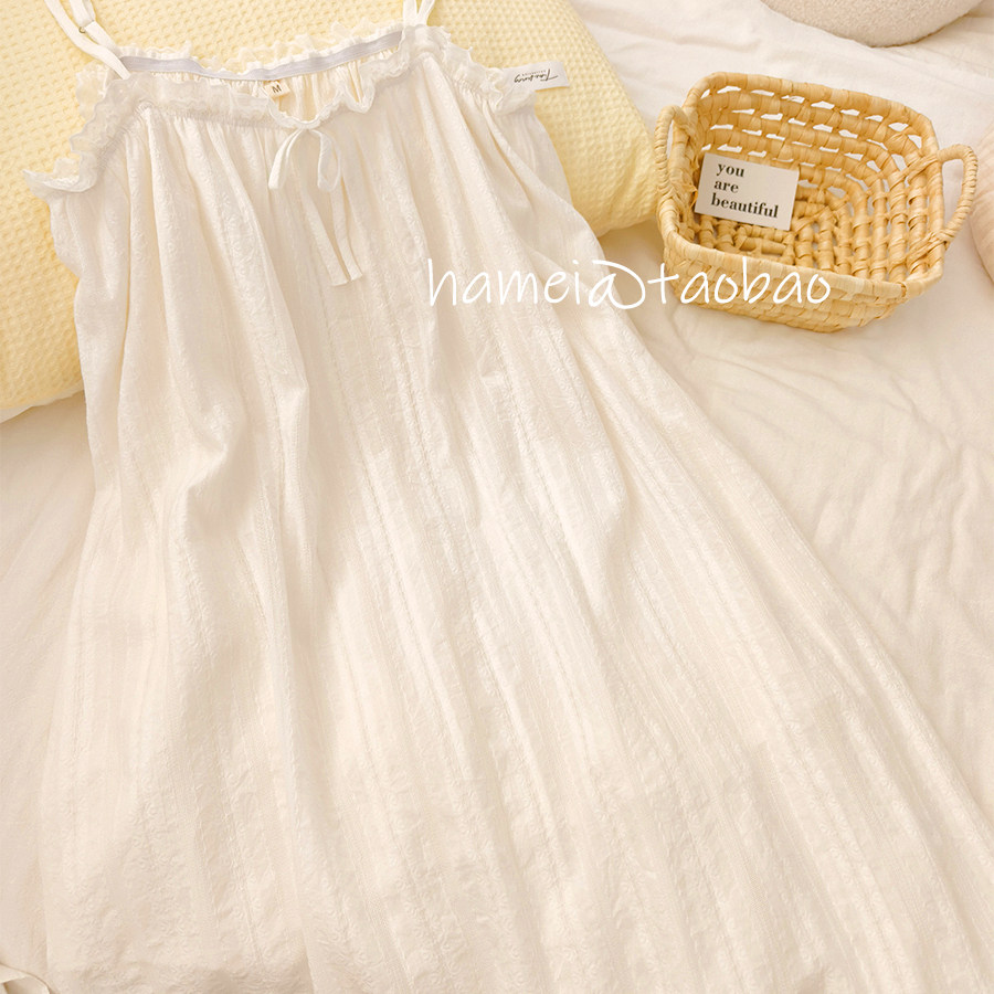 【茶歇】法式初恋纯棉提花棉纱吊带睡裙女夏季白色清新性感家居服