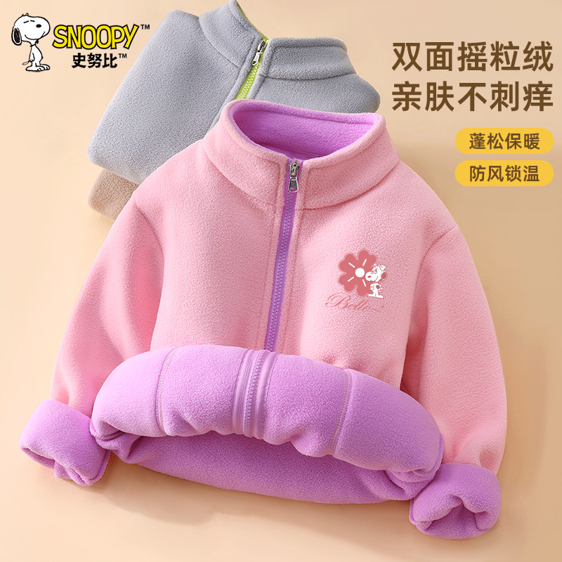 史努比女童外套秋冬款2025新款女孩冬季摇粒绒上衣儿童装洋气衣服