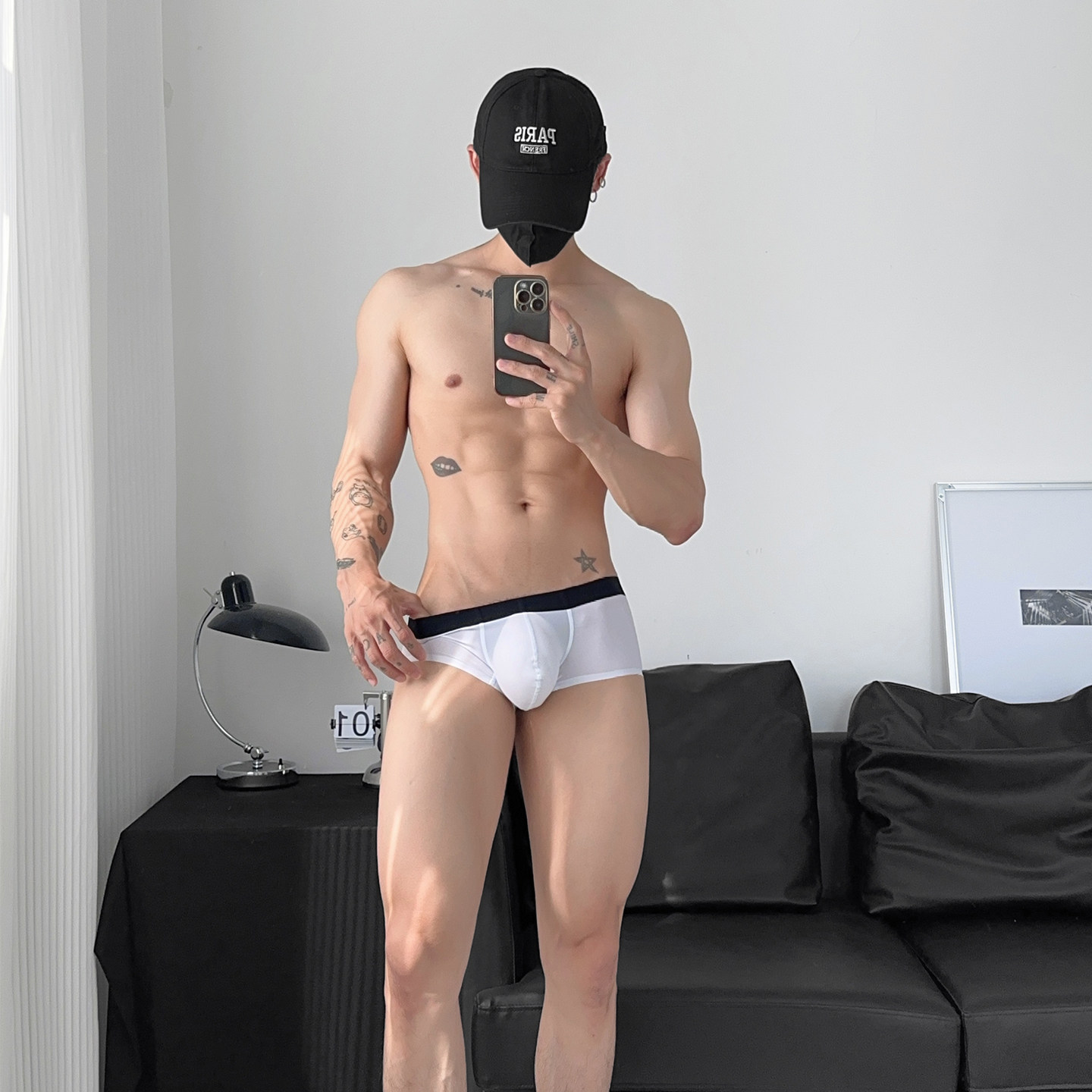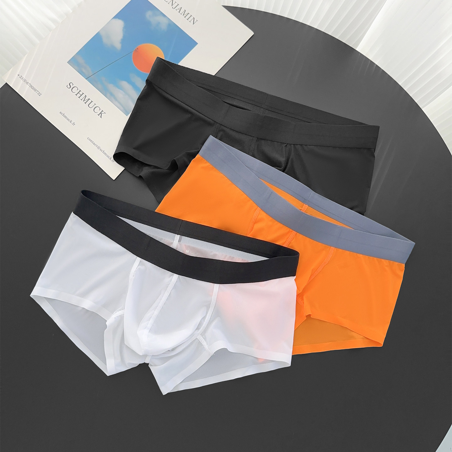 2条装男士平角内裤低腰冰丝轻薄透气U凸性感透明纯色青年底裤包邮